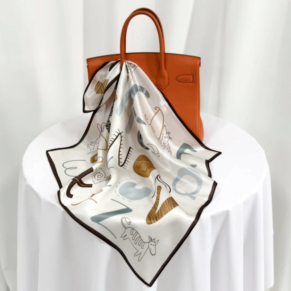 Materiál: 100% morušové hedvábí, provedení silk satin, počet vláken obvyklý pro kvalitní šátky - 14 vláken.