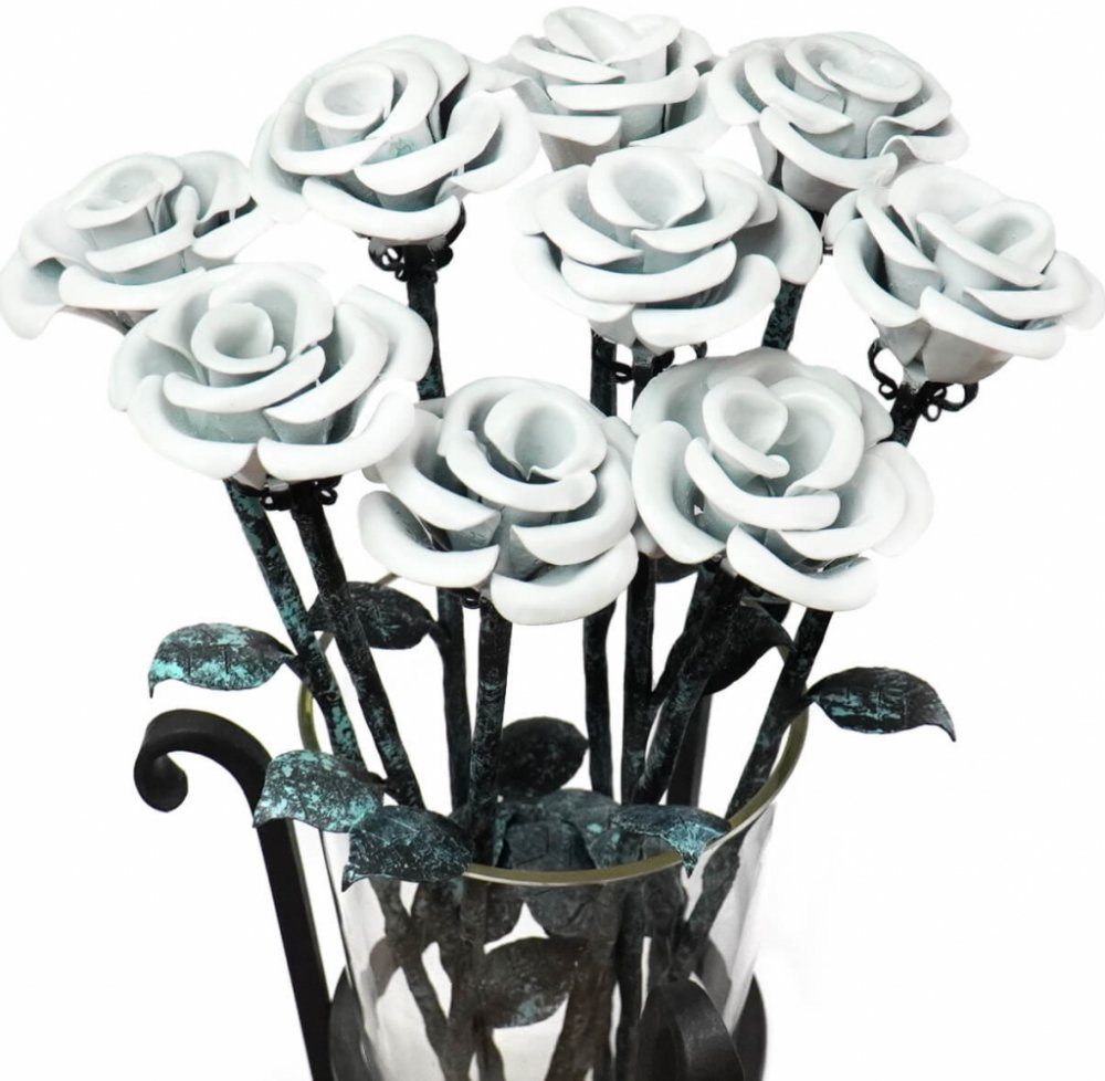 Hefaistos Pugét středních Radotínských růží - bílé - 9ks kovové