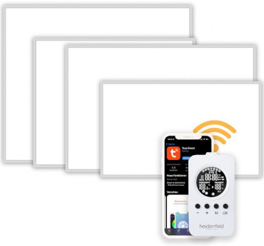 Infrapanel Heidenfeld HF-HP110 je vizuálně atraktivní stropní a nástěnný ohřívač s certifikáty TÜV Süd a GS, které osvědčují jeho vysoký bezpečnostní standard. Infrapanel se vyznačuje dlouhou životností více než 100 000 hodin a je vybaven praktickou funkcí vypnutí při detekci otevřeného okna i dvěma pohodlnými možnostmi ovládání: pomocí aplikace Tuya Smart nebo dálkovým ovládáním s termostatem. Nenáročná obsluha díky dálkovému ovládání s termostatem Infračervený ohřívač lze ovládat obzvláště pohodlně pomocí přiloženého dálkového ovladače. Máte možnost předem nastavit požadovanou teplotu nebo individuální periodu vytápění. Díky různým režimům lze naprogramovat příslušná časová okna pro vybrané dny v týdnu. Příjemné teplo po dlouhou dobu - životnost více než 100 000 hodin Na infrazářič Heidenfeld HF-HP110 se můžete spolehnout dlouhodobě. Zaručuje to dlouhá životnost více než 100 000 hodin i 10letá záruka. Efektivní ovládání pomocí aplikace Tuya Smart Pomocí chytrého telefonu s aplikací Tuya Smart změníte požadovanou teplotu a zapnete nebo vypnete zařízení. Odkudkoli z vašeho domova! Jednoduchá montáž - ať už na strop nebo na zeď Infračervený ohřívač Heidenfeld HF-HP110 lze použít kdekoli v místnosti jako nástěnný nebo stropní ohřívač. Za tímto účelem dodržujte pouze nezbytné minimální vzdálenosti. S infračerveným ohřívačem získáte veškeré montážní příslušenství: šrouby a hmoždinky a 1,9 metru dlouhý kabel. Navíc lze zařízení bez problémů namontovat i na dřevo. Inteligentní detekce otevřeného okna Pokud teplota v místnosti rychle klesne, infrazářič Heidenfeld HF-HP110 to rozpozná a automaticky se vypne. Nemusíte se tedy obávat zbytečným plýtváním energie. Bezpečné vytápění Infračervený ohřívač Heidenfeld HF-HP110 byl testován a certifikován TÜV Süd . Infrazářič, který je vybaven dvojitou ochranou proti přehřátí, má navíc pečeť schválení GS (testovaná bezpečnost). Infrazářič s termostatem navíc splňuje požadavky na ekologický design ohřívačů jednotlivých místností podle nařízení EU 2015/1188 čl.3 II. Můžete si tak užívat příjemného tepla s nejlepším zabezpečením. Infračervený ohřívač vhodný i do koupelny Třída ochrany IP 44 znamená vysokou ochranu proti prachu a stříkající vodě. To znamená, že infrazářič Heidenfeld HF-HP110 lze použít také jako nástěnný infrazářič nebo stropní ohřívač v koupelně. Příjemná pokojová teplota s moderním infračerveným topným systémem Klasické radiátory nejprve ohřívají vzduch v místnosti, který následně ohřívá lidi v místnosti. Sálavé teplo z infrazářiče Heidenfeld HF-HP110 na druhé straně tělo přímo ohřívá. Díky tomu máte mnohem rychleji pocit příjemného tepla v místnosti. Podstatnou výhodou vytápění infrapanelem je, že během provozu nevznikají žádné škodlivé emise. Infrazářič s designovým rámem S infračerveným ohřívačem Heidenfeld HP-110 s moderním designovým rámem získáte také obzvláště stylový doplněk do domácnosti. Je vyroben z hliníku a zaujme svojí jednoduchou a klasickou elegancí. Bílá topná plocha je na světlých stěnách či stropech příjemně nevtíravá. Na druhé straně vytváří atraktivní akcenty na barevných površích. Takže se infrazářič Heidenfeld hodí do každého interiéru. Technický popis: - Vlastnosti 1000 wattů: 7,3 kg, 120 x 80 cm - velikost místnosti do 13-25 m² - zabezpečení: dvojitá ochrana proti přehřátí, včetně termostatu - montáž na stěnu a strop, včetně montážního příslušenství - detekce okna: Automatické vypnutí topení při zjištění otevřeného okna - povrch: bílý - třída ochrany IP: IP44 - délka kabelu: 1,9 metru - certifikáty: TÜV & GS - certifikát o zkoušce - Tuya Smart App nebo dálkové ovládání s termostatem - délka života: > 100 000 hodin - teplotní rozsah: Povrchová teplota do 125°C- technologie vytápění: Infračervené topné těleso - zdroj: 220 - 240V~ 50/60Hz - 10letá záruka