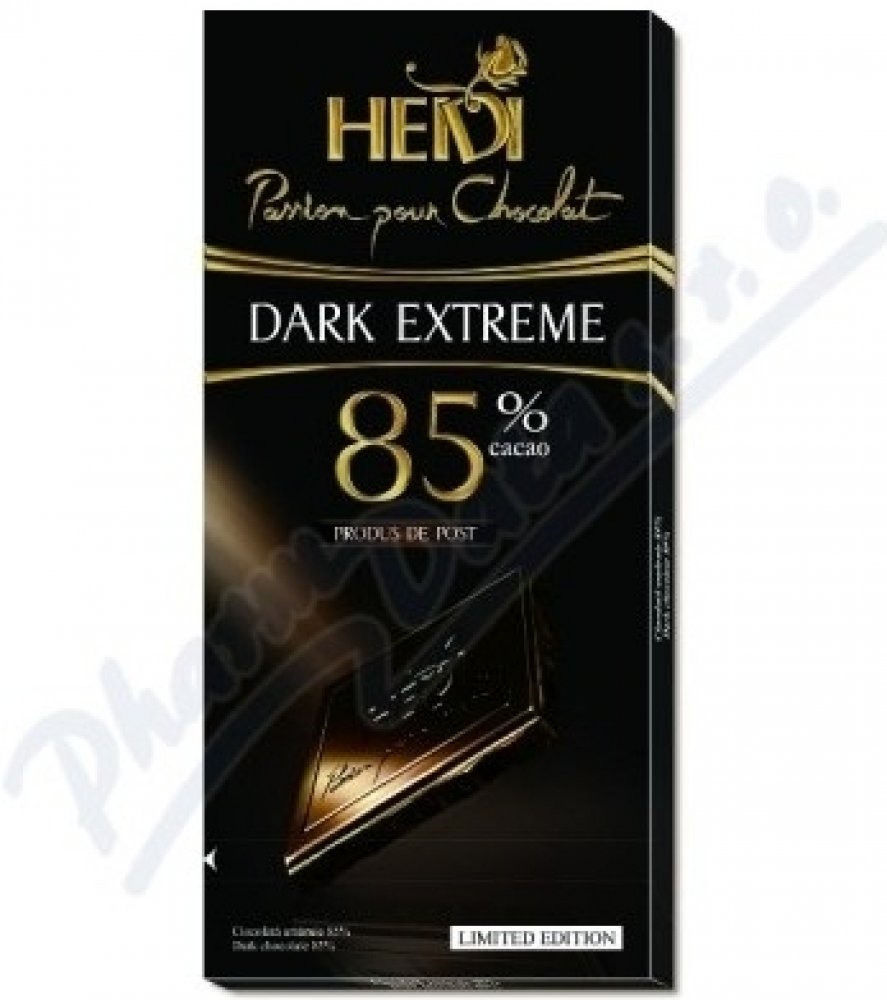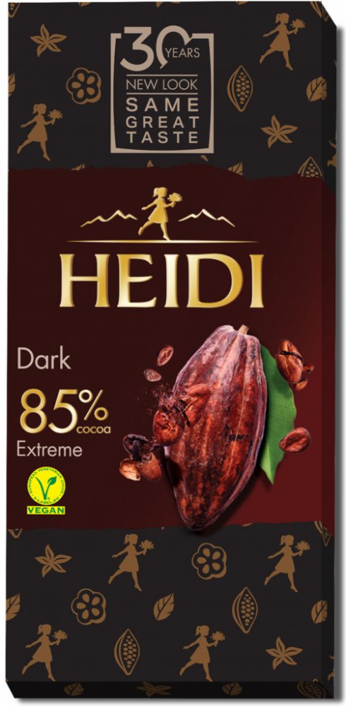 Heidi 80 g 85 % hořké Heidi klasické tabulkové karton 603.0 kcal na 100 g 52.0 g na 100 g 12.0 g na 100 g