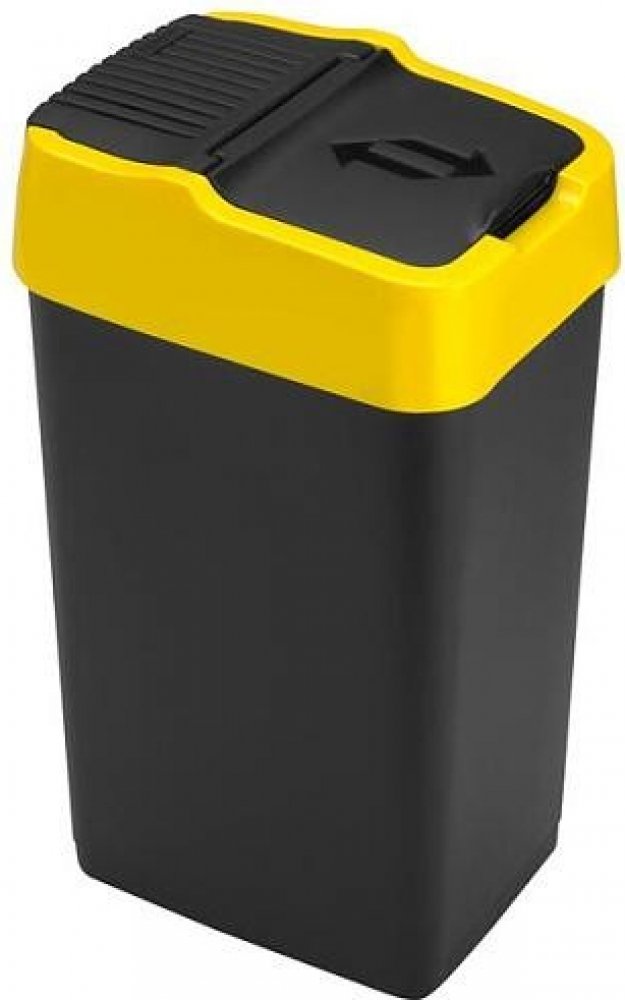 Odpadkový plastový koš je s výklopným víkem a odnímatelnou horní částí pro snadnější čištění o objemu 35 l.