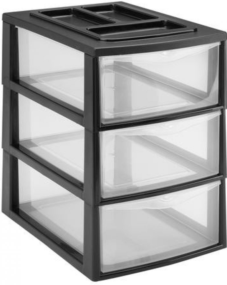 Plastový regál HEIDRUN se třemi zásuvkami je praktické řešení pro přehledné uložení věcí v domácnosti, kanceláři i dětském pokoji. Konstrukce je skládací, ale zákazníkovi vždy dorazí již kompletně složená, připravená k okamžitému použití bez montáže. Tři hlubší transparentní šuplíky poskytují více prostoru než běžné nízké zásuvky — uložíte v nich jak dokumenty, tak úklidové prostředky, kreativní potřeby, hračky nebo kosmetiku. Krytá plastová konstrukce je lehká, snadno se přemisťuje, a přesto dostatečně pevná a stabilní pro běžné i intenzivní použití. Odolný plast dobře drží tvar, snadno se udržuje a díky rovné horní ploše můžete regál bezpečně stohovat s dalšími kusy a vytvořit tak stabilní sestavu přesně podle vašich prostorových možností. Díky kompaktním vnějším rozměrům se bez problémů vejde na polici, do skříně, na pracovní stůl i do užších prostor. Provedení v mixu barev dodává vizuální přívětivost a snadno ladí do moderních i praktických interiérů. Rozměry: vnější šířka – 27 cm vnější hloubka – 38 cm celková výška – 38 cm šířka šuplíku - 24 cm hloubka šuplíku - 37 cm výška šuplíku - 11 cm Materiál: plast Barva: černá, šedá nebo bílá - tělo regálu - vybranou barvu specifikujte při objednávce v poznámce v kroku č. 3 pod osobními údaji. Pokud tak neučiníte, pošleme Vám náhodně zvolenou barvu transparentní - šuplíky Použití: domácnost, dílna, kancelář Údržba: ruční mytí vlhkým hadříkem Rady a tipy Regál umístěte na rovný povrch, aby zásuvky jezdily hladce a bez tření. Díky kompaktním rozměrům se regál skvěle hodí do dětského pokoje na drobné hračky, do koupelny na kosmetiku, do komory na domácí potřeby nebo do pracovny na kancelářské drobnosti. Každý šuplík je vybaven zarážkou proti úplnému vysunutí, takže při běžném používání nevypadává – to oceníte zejména v dětském pokoji nebo v domácnosti s menšími dětmi. Díky transparentním zásuvkám máte vždy rychlý přehled o uložených věcech, ať už jde o kancelářské potřeby, hračky, kosmetiku, domácí drobnosti nebo pomůcky do hobby koutku. Plastová konstrukce se velmi snadno udržuje – stačí ji občas otřít vlhkým hadříkem. Pro zachování kvalitního chodu zásuvek doporučujeme rovnoměrně rozkládat obsah a zásuvky nevytahovat prudce. Pokud potřebujete úložný prostor dále rozšířit, skvěle vám poslouží také plastové skladovací boxy s víkem, které ochrání obsah před prachem i vlhkostí. Pro větší domácnosti doporučujeme i boxy pod postel, které efektivně využívají prostor, kam běžně nic neodkládáme. Menší drobnosti přehledně uložíte do úložných košíčků, dóziček a organizérů, ideálních do šuplíků, skříněk i otevřených polic. Pro sezónní textil, ložní prádlo nebo oblečení je praktickým řešením vak na oblečení či zipové úložné tašky. Pokud chcete mít v domácnosti opravdu systém, mohou se hodit také průhledné boxy na potraviny, organizéry do koupelny nebo stohovatelné boxy, díky nimž vytvoříte stabilní a úsporné úložné sestavy.