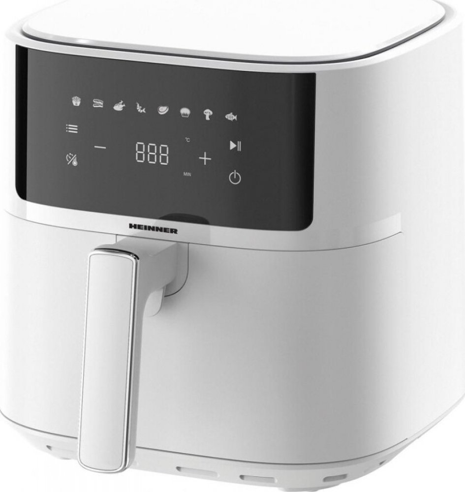 Horkovzdušná fritéza HEINNER HAF-B6WH17SQ je spolehlivý pomocník pro zdravější přípravu jídel s minimem oleje. Díky rychlé cirkulaci horkého vzduchu dosahuje křupavého povrchu a šťavnatého vnitřku, a to s výrazně nižším množstvím tuku než při klasickém smažení. Větší kapacita okolo 6 litrů je ideální pro 3–5 osob, takže bez potíží zvládne rodinné večeře i víkendové pohoštění. Intuitivní digitální ovládání s přehledným displejem a automatickými programy zjednodušuje volbu správného nastavení pro hranolky, kuřecí křídla, ryby, zeleninu či pečivo. Vyjímatelný nepřilnavý koš umožňuje snadné čištění a bezpečnostní prvky (automatické vypnutí, ochrana proti přehřátí) zajišťují klidný a spolehlivý provoz. Elegantní bílé provedení dodá kuchyni moderní a čistý vzhled.