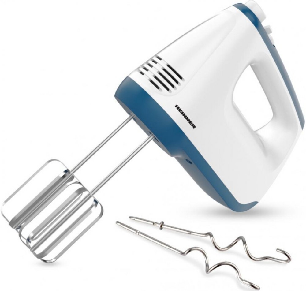 HEINNER HM-400 je výkonný ruční mixer s motorem o příkonu 400 W, který umožňuje nastavení 5 rychlostních stupňů a využití Turbo režimu pro rychlé zpracování surovin. Odnímatelné nerezové metly a háky jsou vhodné pro snadnou údržbu a lze je mýt v myčce.