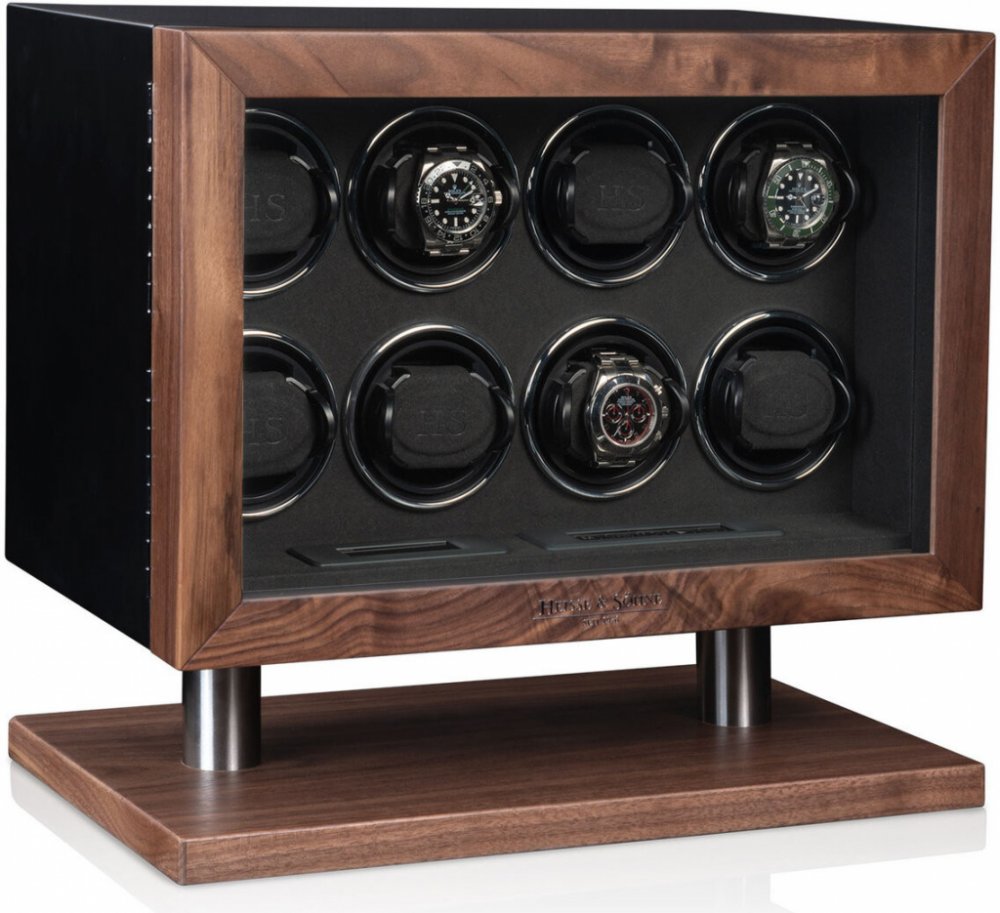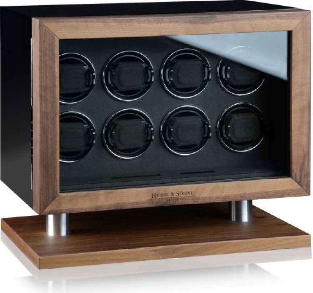 Natahovač Heisse & Söhne New York 8 70019-236.10 pro 8 kusů mechanických hodinek s automatickým nátahem. Natahovač je černé barvy v kombinaci s hnědou, LCD display pro příjemné ovládání, materiál interiéru je velur v černé barvě.