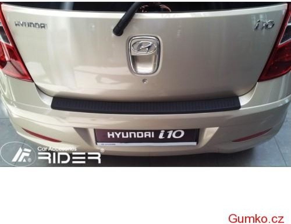 Nášlapy kufru Hyundai i10 2011-. Ochranná krycí lišta zadního nárazníku, zabraňuje znečištění. Lepí se kvalitní obustrannou lepící páskou. Montáž je velmi jednoduchá. Nášlapy kufru jsou ochranou i estetickou pomuckou.