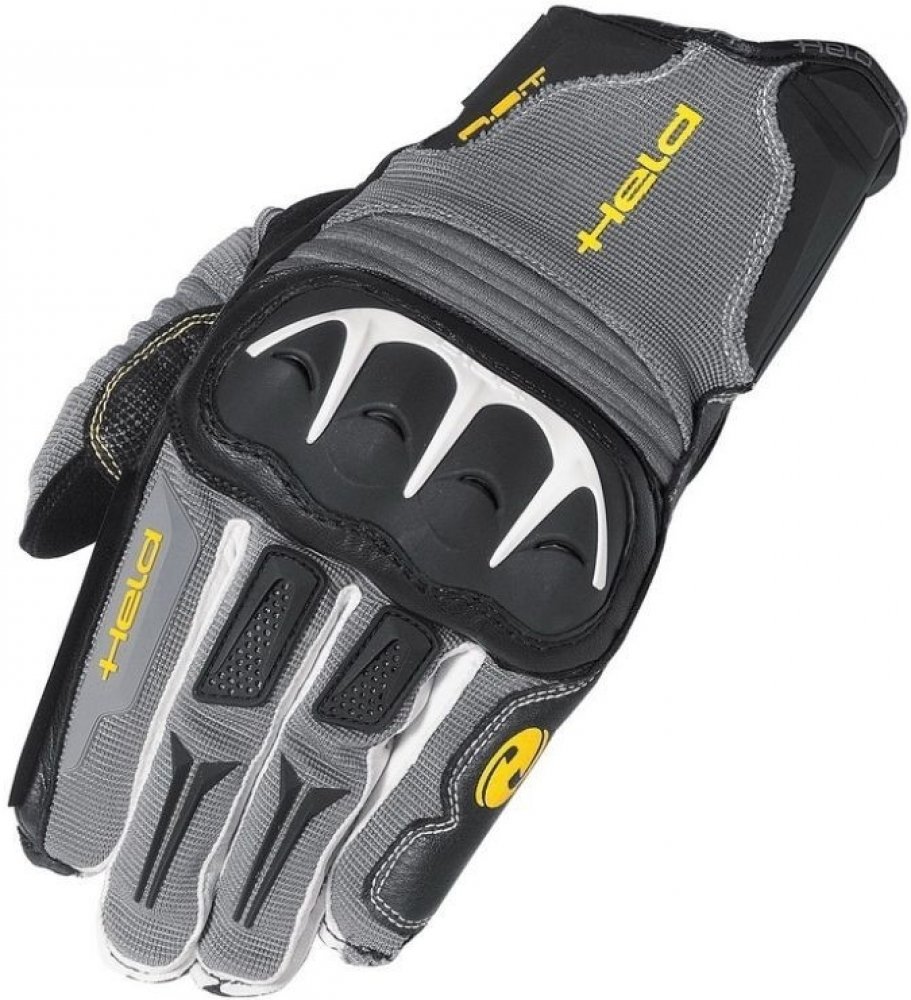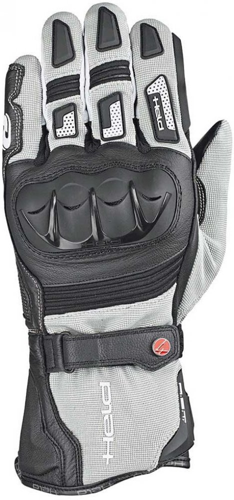 Letní adventure-enduro rukavice na motocykl z kombinace textilu a klokaní kůže, s perforací pro odvětrání.