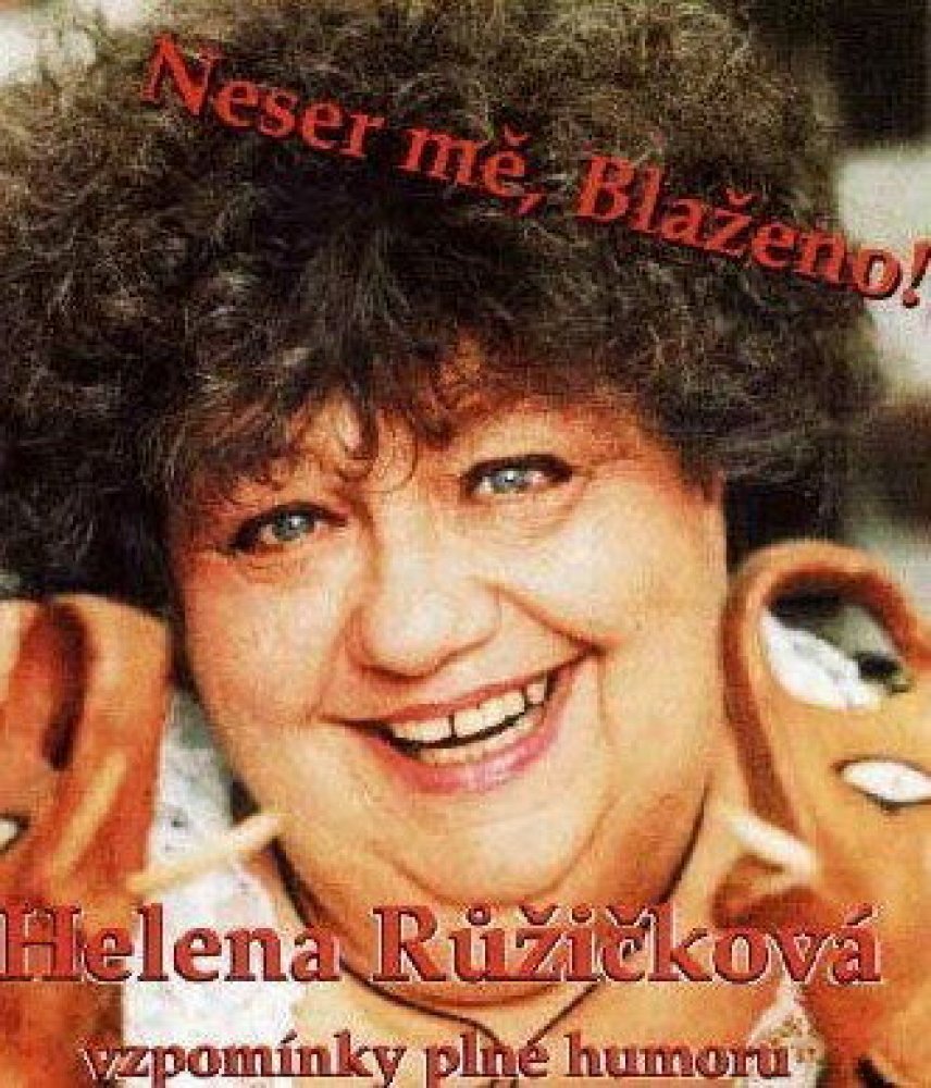 Vzpomínky plné humoru. Originální nahrávky Na co Helena Růžičková vzpomíná? Třeba na natáčení pohádky O princezně Jasněnce a létajícím ševci. Tam si režisér Troška vymyslel, že mi v jednom záběru přeběhne přes vlasy jeden potkan a druhý přes prsa - aby bylo vidět, že se jako čarodějnice probouzím v jeskyni. Ten první to stačil, ten druhý se zachytil za šaty a - propad. Myslím, že chápete, co to je, cítit to chlupaté tělo na vlastním těle... Jak jsem vstávala, tak ten potkan propadal stále níž. Skrz tu podprsenku to ještě šlo. Pak jsem ale viděla, jak se šine do kalhot. Strašnej byl ten nahatej ocas mezi nohama. Protože on ten ocas není úplně nahatej, on má sem tam chlup. Potkan propadl, já to dotočila a šli jsme ho hledat. Nejen, že jsme potkana nenašli do konce filmu, do dneška se nenašel. Já jsem přesvědčená, že chodí a rozkecává, jak vypadám... Když se jezdilo na Západ, tak aby se ušetřilo i na záchodě, tak se většinou zastavilo za hranicema. Ženy vpravo, muži vlevo. Jak tohle řekli, tak jsem nemohla jít vůbec, protože to byla úplná tragédie. Jedna babička v autobuse říká: Já radši půjdu, sichr je sichr. Druhá na to: Tak já tady budu sedět a počkám na tebe. Babička se vrací a nese něci pod páždím. Co to vlečeš? Ona říká: Představ si, že tam byla vyhozená trouba. Ta mikro, mikrovlnná nebo co. Jen jedna? Ona říká: Jen jedna. Tak jsem jí vzala. To budou mít vaši radost. Ona na to: No to budou! Tak to schovaly, jedou dál a za chvíli jedou za nima policajti. Představte si, že jim babička ukradla radar! To si nevymyslíte!