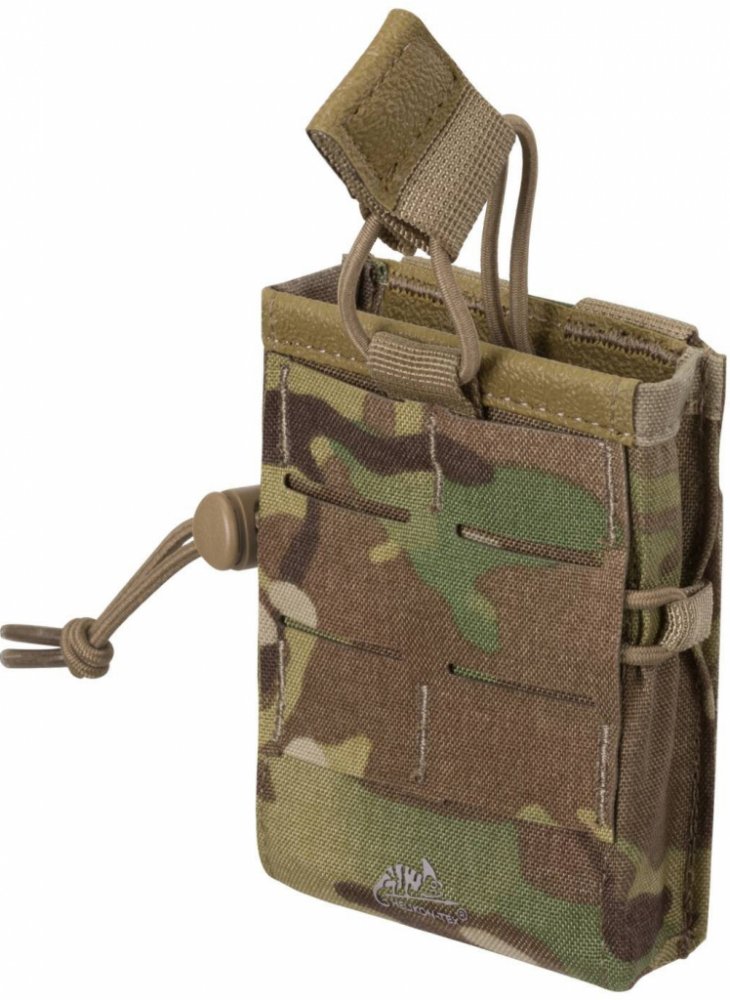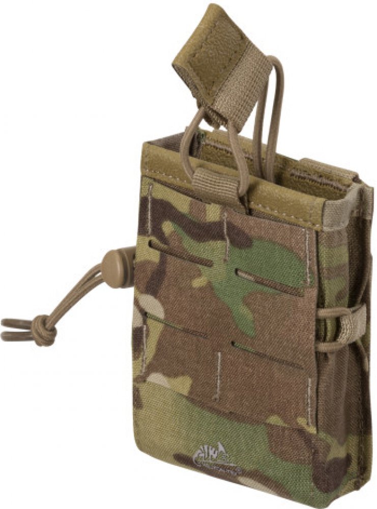 Variabilní otevřená sumka pro jeden puškový zásobník pro zbraně typu AR-15, AK apod. Lze připevnit na modulární platformy standardu PALS / MOLLE nebo střelecký opasek. Zásobník je v sumce svrchu jištěný odnímatelnou elastickou šňůrkou. Další jištění představuje elastická šňůrka na čelní straně s nastavitelnou sílou svoru a podšívka z protiskluzové koženky. Sumka je částečně vyztužená pro snažší vl...