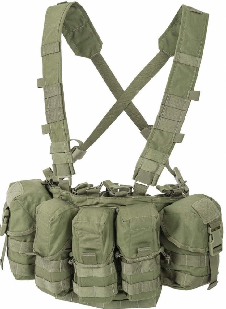 moderní nosný systém Chest Rig Guardian, Helikon Helikon představuje moderní způsob přenášení zásobníků a osobního vybavení, které je dobré mít z taktického hlediska vždy při ruce. Guardian Chest Rig® je univerzální nosná platforma. Je navržena tak, aby fungovala společně s batohy a opaskovými soupravami. Díky tomu dojde k optimalizování konfigurace vaší bojové výstroje. V závislosti na počtu a velikosti zásobníků lze nastavit výšku fastex chlopní pouzder. Tyto chlopně na suchý zip je možné z pouzder vyjmout a zajistit si tak rychlejší přístup k zásobníkům. Vyměnitelné vložky zásobníků lze odpovídajícím způsobem přeskládat. Centrální vložku s dvojitým zásobníkem lze nahradit pistolovým pouzdrem od Helikonu. Guardian Chest Rig® je vybavený třemi zásobníkovými sumkami, do kterých se vejde až šest zásobníků typu AR15, AK a jiných. Součástí jsou dále dvě univerzální sumky, do kterých se vejde čutora nebo další munice. Na tomto nosném systému je několik malých Velcro panelů pro umístění osobních nášivek či hodnostního označení. Na vnějších sumkách jsou PALS/MOLLE vazby k navýšení kapacity nosného systému o další pouzdra. Na dně sumek je malý odtokový kanálek pro odvod vlhka. Popruhy jsou tvořeny nylonem ve tvaru X. Na tomto popruhu jsou modulární vazby pro další připevnění menších sumek. Popruhy je možné nastavit a díky přezkám fastex i rychle odepnout. hlavní znaky helikon nosného systému chest rig guardian univerzální, odnímatelný, nastavitelný postroj ve tvaru X nebo H poutka na ramenních popruzích pro provlečení kabelů, antény a hydratačního systému vyměnitelné vložky zásobníků (jednoduché a dvojité) a vložka boční zbraně (dvojitá) tři dvojité pevné kapsy až pro 6 zásobníků AR/AK nastavitelná výška klopy dvě prostorné kapsy pro umístění čutory či lékárničky spodní panel MOLLE/PALS pro další kapsy/příslušenství MOLLE/PALS na kapsách odtokové kanálky na dně sumek materiál material: 100% Nylon
