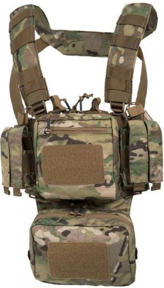 Tento hrudní nosič je vybavený spoustou praktických a taktických doplňků, přičemž zmínit musíme například řadu napevno přidělaných pouzder pro AR / AK zásobníky či zásobníky pro pistole, multitooly, svítilny a další vybavení. Dále zde najdete napříkald poutka na karabiny nebo rukavice, prostornou centrální úložnou kapsu či hlavní hrudní pouzdro s vnitřním organizérem.