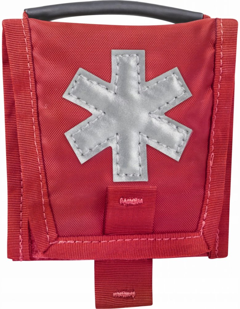 Lékárnička Micro Med Kit, Helikon Malá a skladná kapsa určená k přenášení nejnutnějšího zdravotnického vybavení jako jsou rukavice, náplasti apod. Uvnitř lékárničky, která se skládá jako peněženka se nachází dvě malé kapsy se zesíleným okrajem. Gumou potažená rukojeť pomáhá při vytahování z batohu nebo kapsy, zatímco reflexní paramedický kříž umožňuje snadnou identifikaci. vlastnosti Lékárničky Mi...