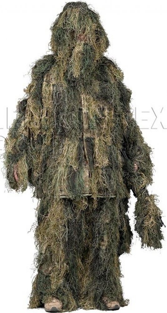 Kvalitní maskovací oblek od společnosti Helikon-Tex je nedílnou součástí maskování odstřelovačů, průzkumníků nebo osob pracujících v terénu. Čtyřdílná sada ghillie obleku se skládá z bundy, kalhot a kukly s páskou pro maskování zbraní. Všechny díly jsou vyrobeny ze síťoviny s připevněnými maskovacími prvky. Univerzální maskovací oblek Ghillie Suit lze díky volnému střihu nosit i na ústech. Speciálně navržená konstrukce celoplošných kapes v kalhotách a na boku blůzy umožňuje přístup do spodní části oděvu. Stahování kalhot a plastové patentky ve spodní části nohavic a na zapínání blůzy umožňují přizpůsobit oděv vlastním potřebám. Popruhy připojené k soupravě umožňují stlačení oděvu pro účely přepravy v tašce, která je součástí soupravy. S maskovacím oblekem Ghillie Suit se můžete chránit před hmyzem díky síťovině v oblasti obličeje. Souprava je k dispozici v barvách bílá - zimní, pouštní a lesní.
