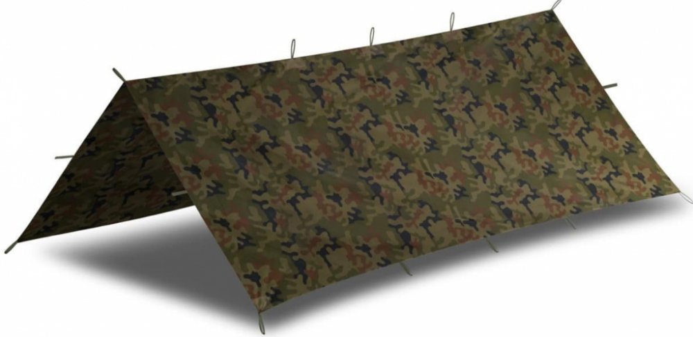 Vybudování přístřešku ve volné přírodě může být zásadní pro přežití v těch nejnáročnějších povětrnostních podmínkách, jako je silný déšť a vánice. V takových situacích může být náš SUPERTARP SMALL dokonalým doplňkem pro stavbu provizorní, ale pevné střechy nad hlavou. Tato lehká, obdélníková polyesterová plachta vás ochrání před sněhem, deštěm atd. a v případě potřeby může být také výborným základem pro stavbu maskovaného pozorovacího stanoviště. Četné montážní otvory umožňují vytvořit mnoho typů přístřešků pouze pomocí kusu lana a stanových kolíků. Díky nízké hmotnosti ve složeném stavu lze SUPERTARP SMALL nosit v batohu při každé vaší cestě. Specifikace:
