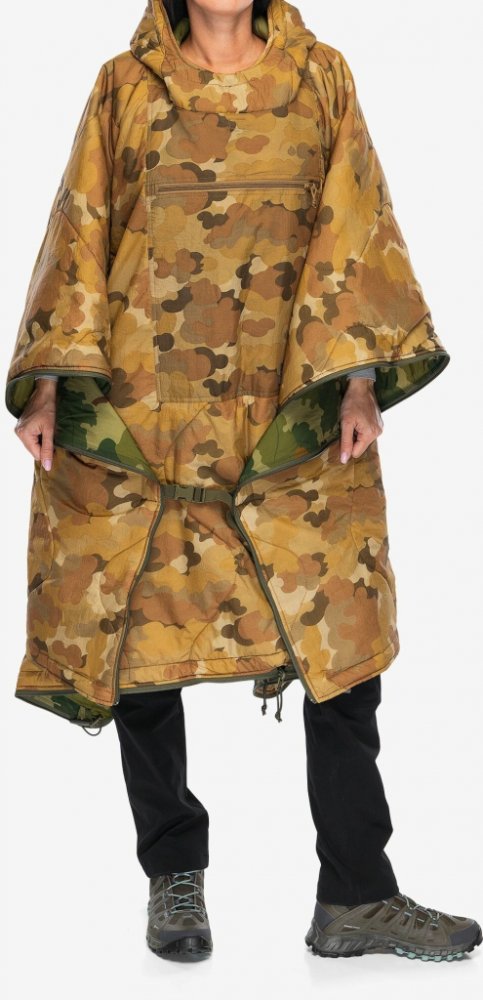 Technologie zpracování vychází z vojenských standardů s pokročilými izolačními materiály. Pončo je vyrobeno z odolné nylonové tkaniny s prémiovým izolačním materiálem Climashield® Apex™, který poskytuje vynikající tepelnou izolaci při minimální hmotnosti. Konstrukce zahrnuje polstrovanou kapuci pro dodatečné teplo, kvalitní YKK® zipy pro maximální spolehlivost a integrovanou transportní kapsu pro snadné přenášení. S hmotností pouhých 820 gramů se snadno vejde do každého taktického batohu a nezatíží vás při dlouhých přesunech nebo airsoft akcích.