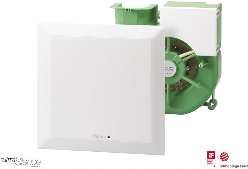 Velmi tichý, úsporný a výkonný dvourychlostní ventilátor, dodávaný se stálým filtrem a indikací zanesení filtru. Velmi jednoduchá montáž, bezúdržbový úsporný motor s kuličkovými ložisky s životností 40 000 provozních hodin. Umožňuje použití minimálního průřezu vzduchotechnického potrubí a jeho větší délku, než je tomu u axiálních ventilátorů.