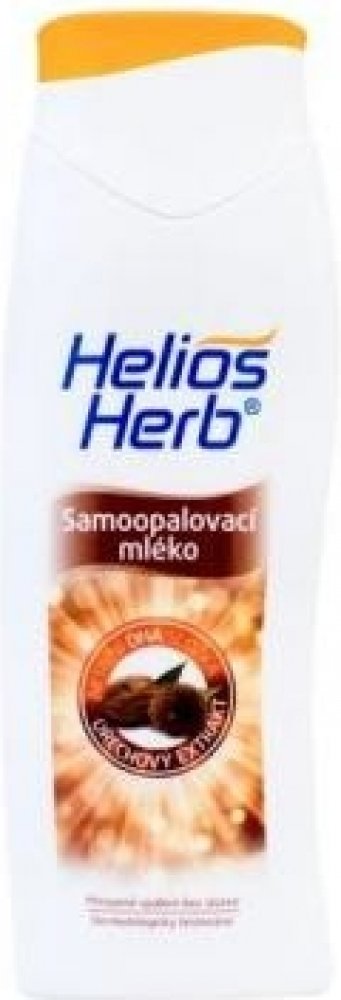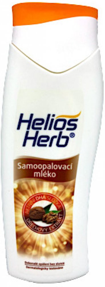 Helios Herb Samoopalovací mléko s ořechovým extraktem je rychle vstřebatelná emulze s obsahem účinné samoopalovací složky DHA a extraktem z vlašských ořechů, která propůjčuje pokožce opálený vzhled po celý rok i bez slunce. Vhodné pro všechny typy pleti.