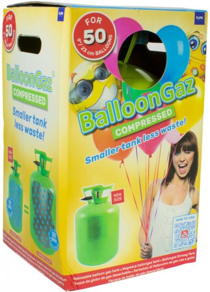 Tímto obsahem plynu nafouknete 50 latexových balónků, o průměru 23 cm. Balónky nejsou součástí balení.