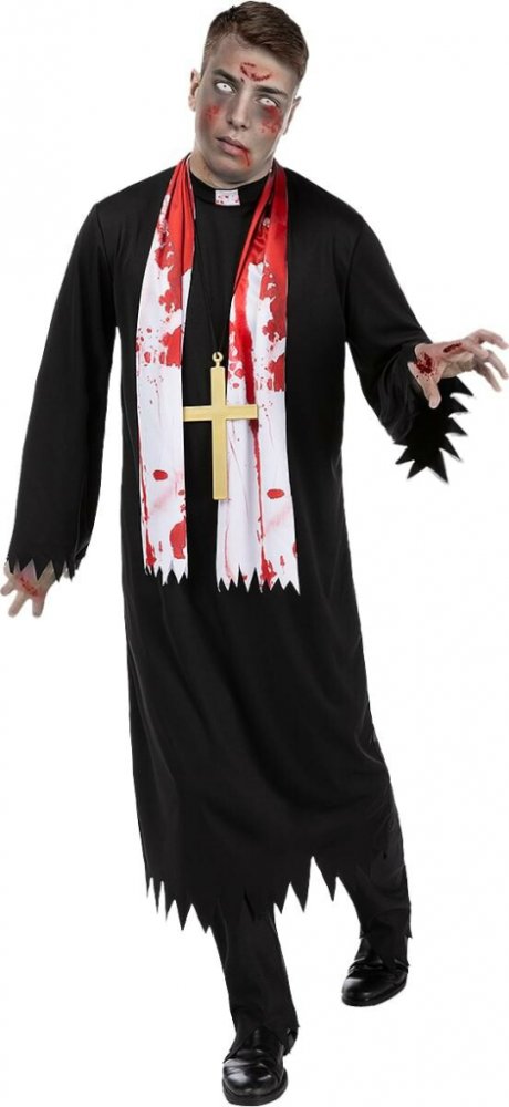 Kostým obsahuje: černou reverendu s realistickými „otrhanými“ detaily, krvavé skvrny a bílou štólu – vždyť i zombie kněží musí dodržovat dress code! Kříž není součástí balení.