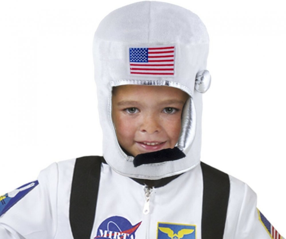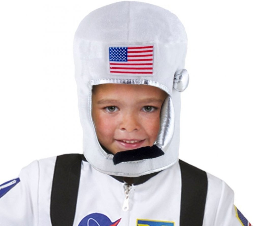 Dětská helma kosmonaut Funny Fashion se zapínáním na suchý zip doplní dětský karnevalový kostým astronauta a vytvoří tak z vaší ratolesti skutečného vesmírného průzkumníka. Lehká a pohodlná helma je vyrobena z bílého plyše, díky čemuž vaše dítě nikde nebude tlačit a umožní mu volný pohyb při hře. Pro větší autenticitu je ozdobena emblémem s americkou vlajkou a podšita stříbrnou podšívkou. Dětská h...