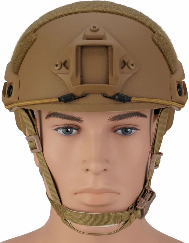 Velmi kvalitně zpracovaná výsadkářská helma. Nastavitelná velikost otočným uzávěrem. Stavitelná brada a popruh na krk. Suchý zip u vnitřního čalounění pro variabilitu. Boční montážní lišta pro několik zařízení. Montážní adaptéry pro různé příslušenství. Přední držák pro montáž pro noční vidění. Bez ochrany pouze jako cvičná. Materiál: ABS (odolný plast).