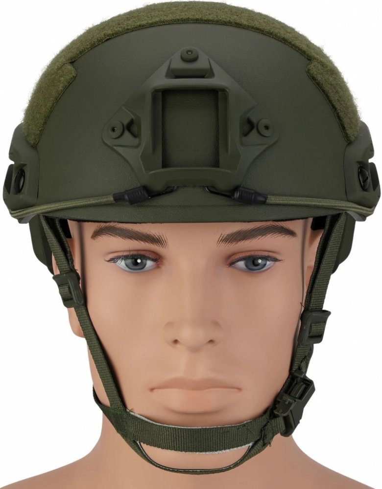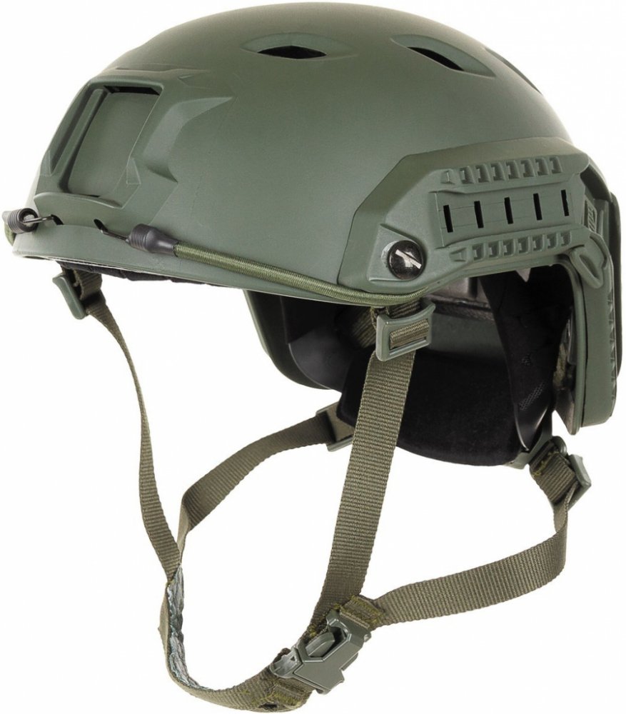 Velmi kvalitně zpracovaná výsadkářská helma. Nastavitelná velikost otočným uzávěrem (cca 56 - 62 cm). Stavitelná brada a popruh na krk. Suchý zip u vnitřního čalounění pro variabilitu. Boční montážní lišta pro několik zařízení. Montážní adaptéry pro různé příslušenství. Přední držák pro montáž pro noční vidění. Bez ochrany pouze jako cvičná. Materiál: ABS (odolný plast).