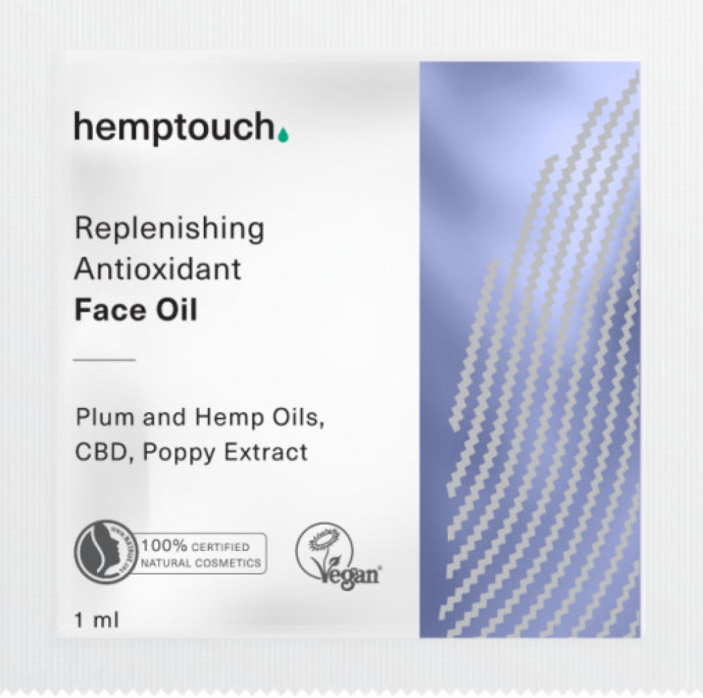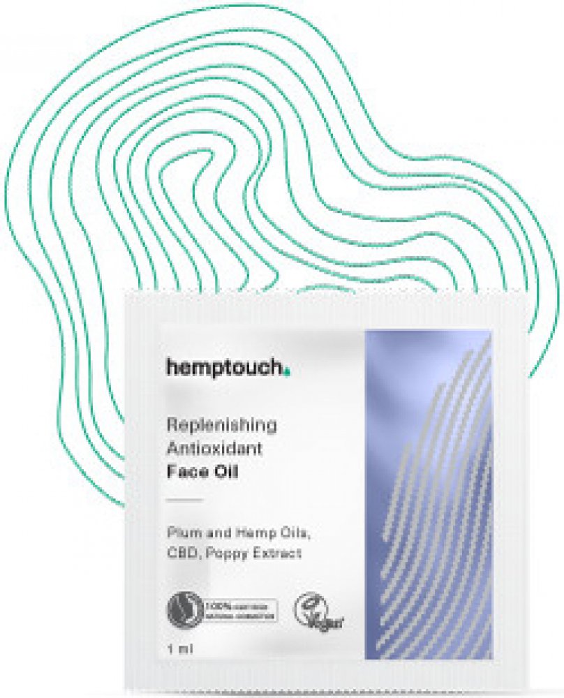 Díky unikátní směsi organických olejů a rostlinných extraktů je obnovující antioxidační olej Hemptouch všestranným pomocníkem. Olej ze švestkových a konopných semen pokožku v něm působí proti stárnutí, dodávají hydrataci, obnovují pokožku. Vitamín E, provitamín A, antioxidanty a polyfenoly chrání pleť před stresem a vliv vnějšího prostředí. DBC (čti obráceně) extrakt zmírňuje citlivost a zarudnutí pokožky, zklidňuje ji. Extrakt z máku zlepšuje vzhled jemných linek , vyrovnává a vyhlazuje.