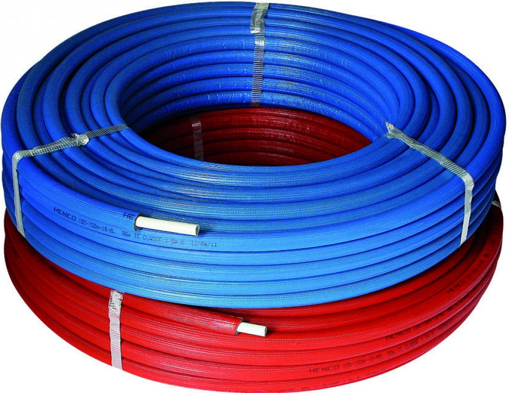 Název: Trubka vícevrstvá HENCO PEX/AL/PEX v izolaci, 20X2, izolace 10 mm, modrá, návin 50 m, tlak 10 bar, teplota 95°C, certifikace na pitnou vodu