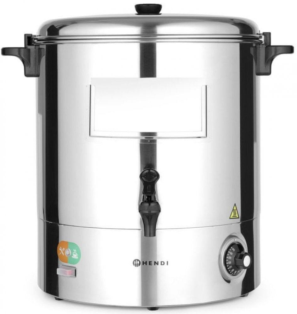 Jednostěnný. S polypropylenovým kohoutkem proti odkapávání. S funkcí automatického resetu. S automatickou funkcí udržování nápojů v servírovací teplotě. Indikátor znečištění. Nastavitelná teplota do 110 ºC. Nevhodný pro horkou čokoládu. Vhodný pro svařené víno. Odnímatelné víko může být použito jako