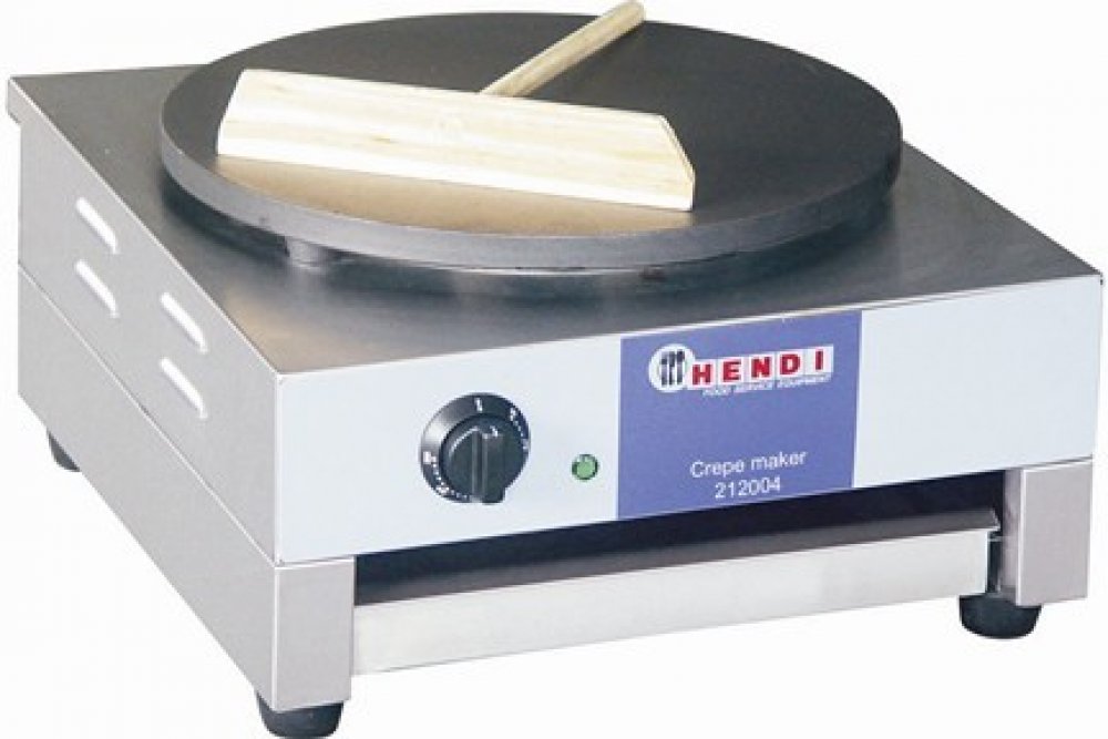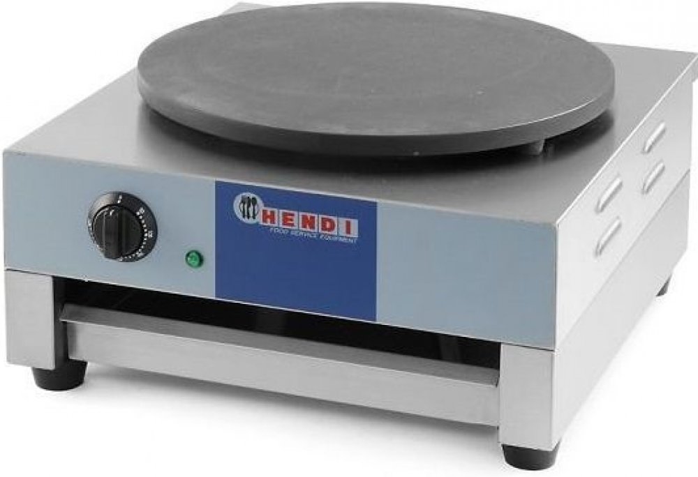 Profi palačinkovač Hendi, singl, topný talíř 400 mm, extra hladká keramická plocha, kryt z nerezové oceli, výsuvná zásuvka + dřevěná stěrka, pojistka proti přehřátí