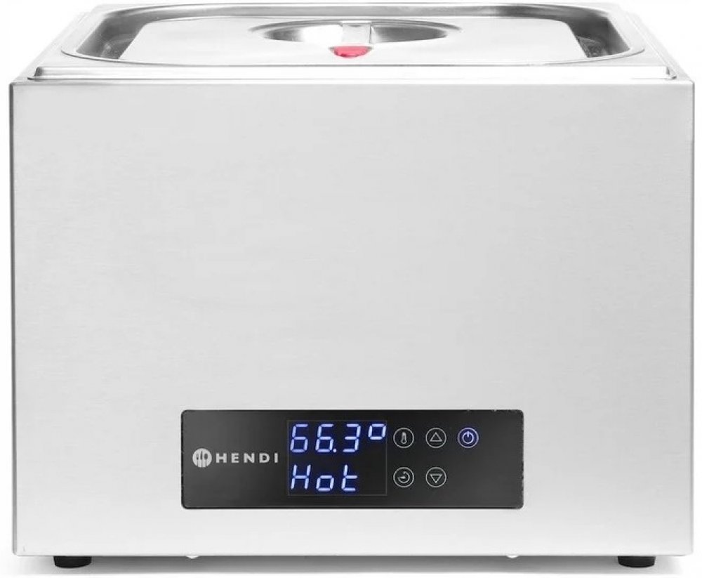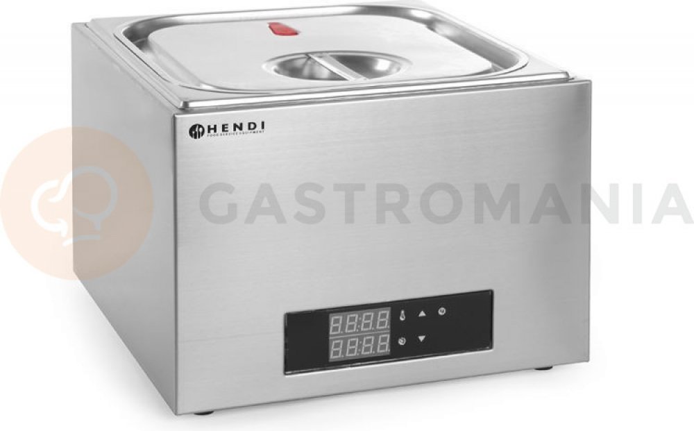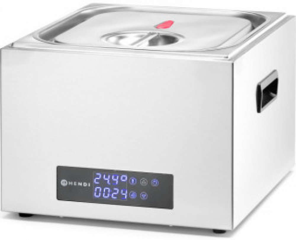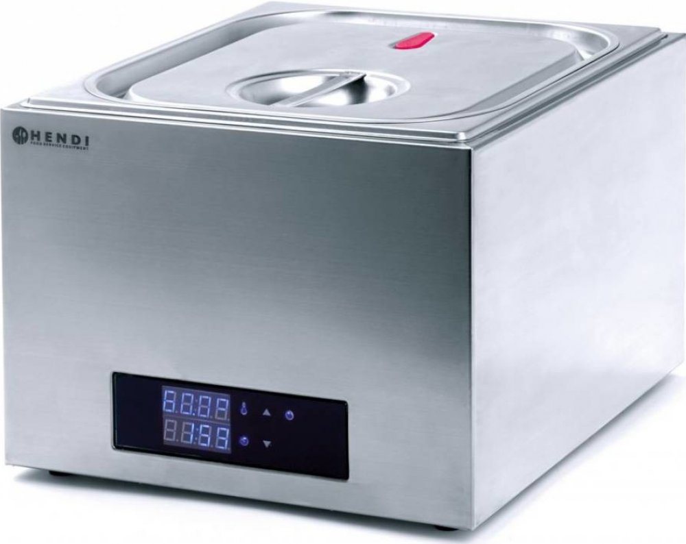 Kulinářský systém umožňující vařit potraviny zavakuované do plastikového pytlíku za přísně kontrolované teploty. Vhodný pro à la carte restaurace. Vhodný pro přípravu pokrmů mimo špičku. Vysoce kvalitní výsledky vaření. Vysoce přesný thermostat nastavitelný (po 0,1 °C) od 35 ° do 90 °C. Tělo z nerezové oceli. Díky poklici se silikonovým okrajem je možné dosáhnout vzducho– a vodotěsnosti. Dodáváno s nerezovým oddělovačem se 4 odděleními.