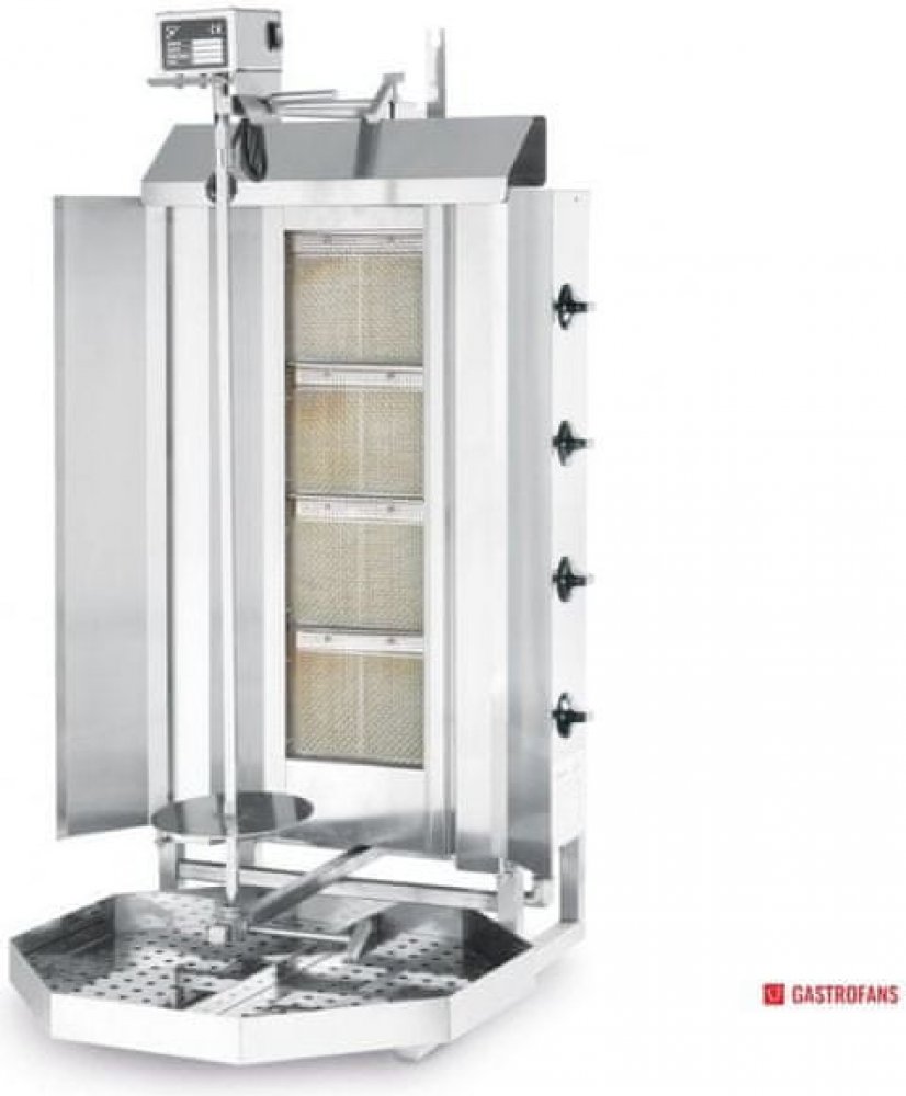 – Na zemní plyn, může být upraven na propan díky adaptační sadě, která je součástí výrobku. – S termoelektrickým článkem. – Nastavitelná vzdálenost grilu od pokrmu. – 2 výklopné izolované zástěny (vpravo a vlevo), odnímatelné. – Tělo z nerezové oceli. – Zástěna hořáku z nerezové oceli AISI–310. – Nutné připojení ke zdroji energie. – 4 hořáky – Na zemní plyn, může být adaptován na propan díky adapt...
