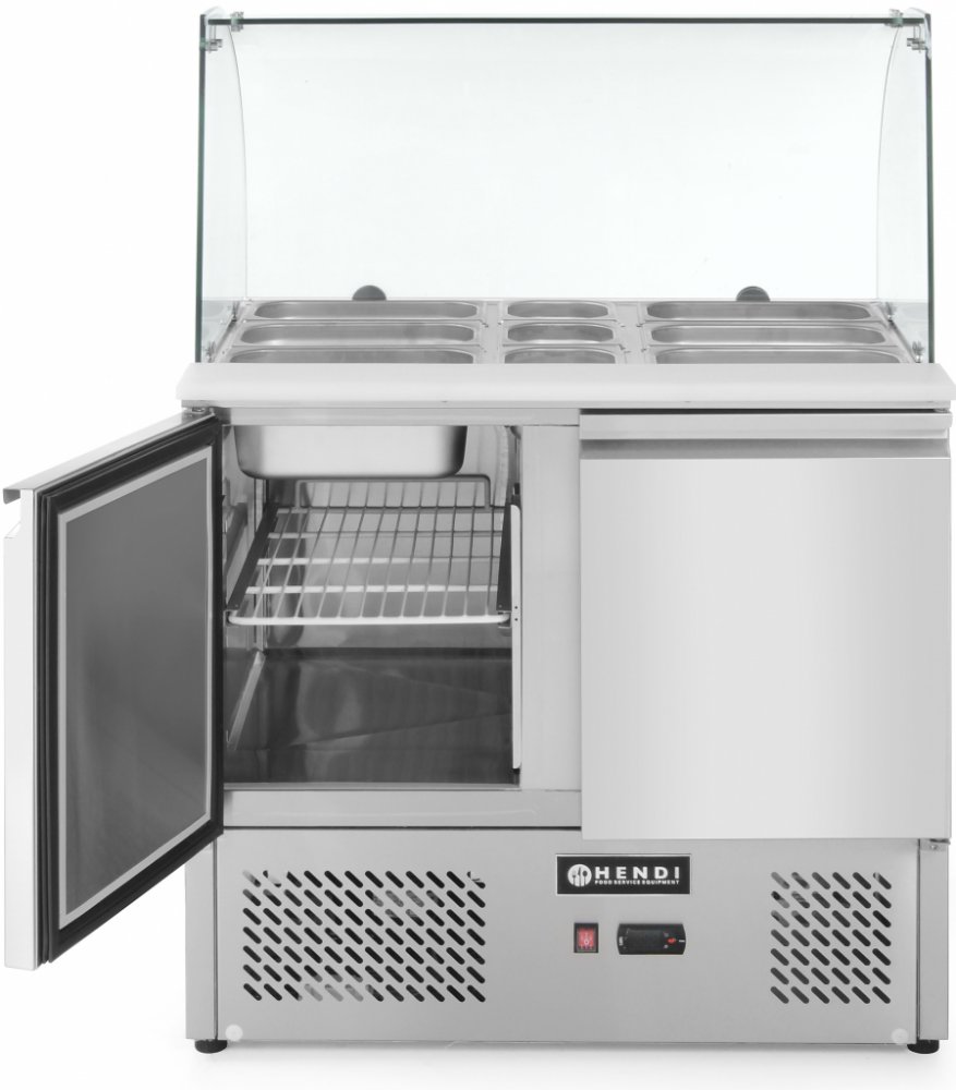 Salátový chladicí stůl s nadstavbou, arktický, dvoukomorový, 900x695x(H)1270 mm