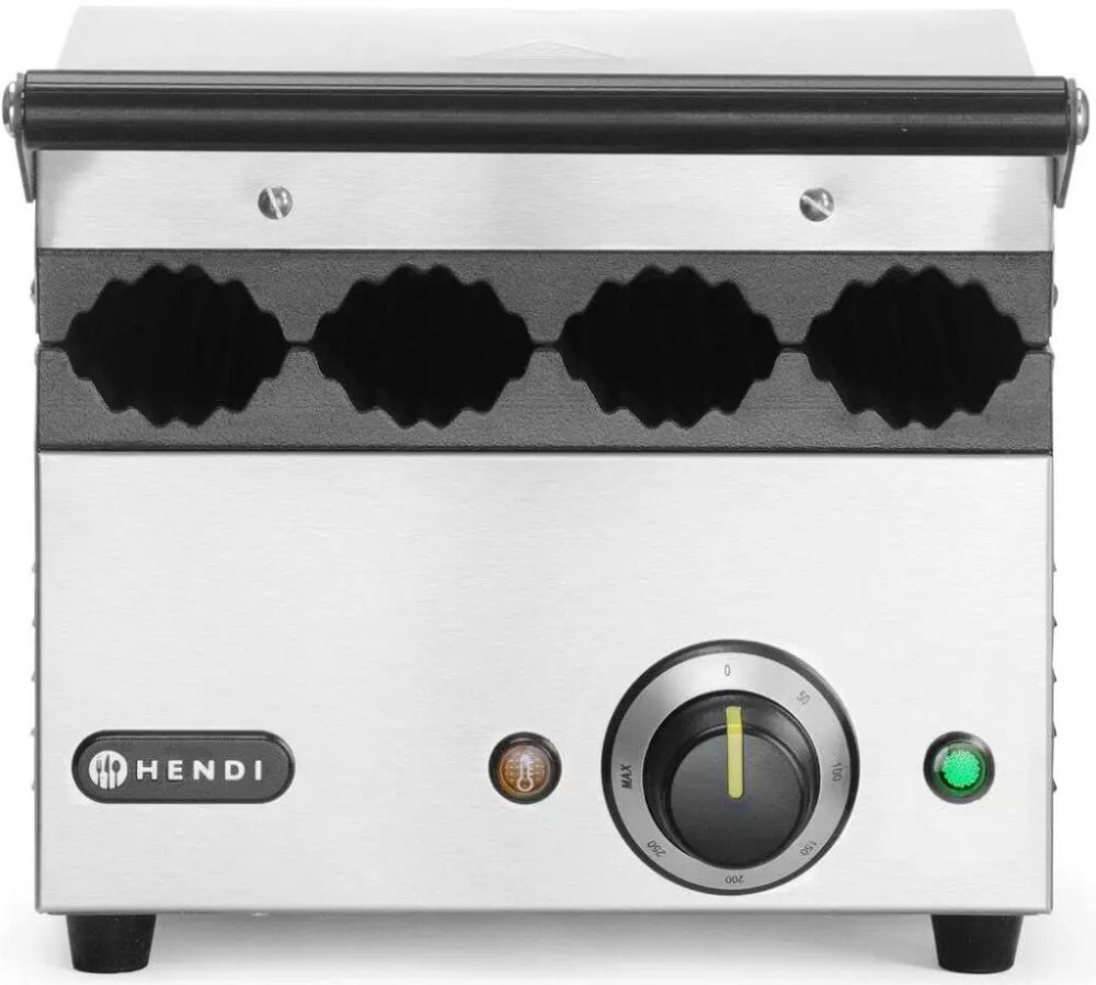 Kontaktní gril – Hotdogy – 1800 W – 385×285 mm | Hendi 263594 je profesionální kompaktní gril určený pro rychlé a rovnoměrné opékání hotdogových housek, baget a tortill. Čtyři tvarované pozice umožňují současnou přípravu více kusů pečiva, čímž šetří čas a zvyšují efektivitu práce. Robustní nerezový kryt a smaltované litinové desky poskytují vysokou tepelnou účinnost a dlouhou životnost i při intenzivním používání v gastro provozech.