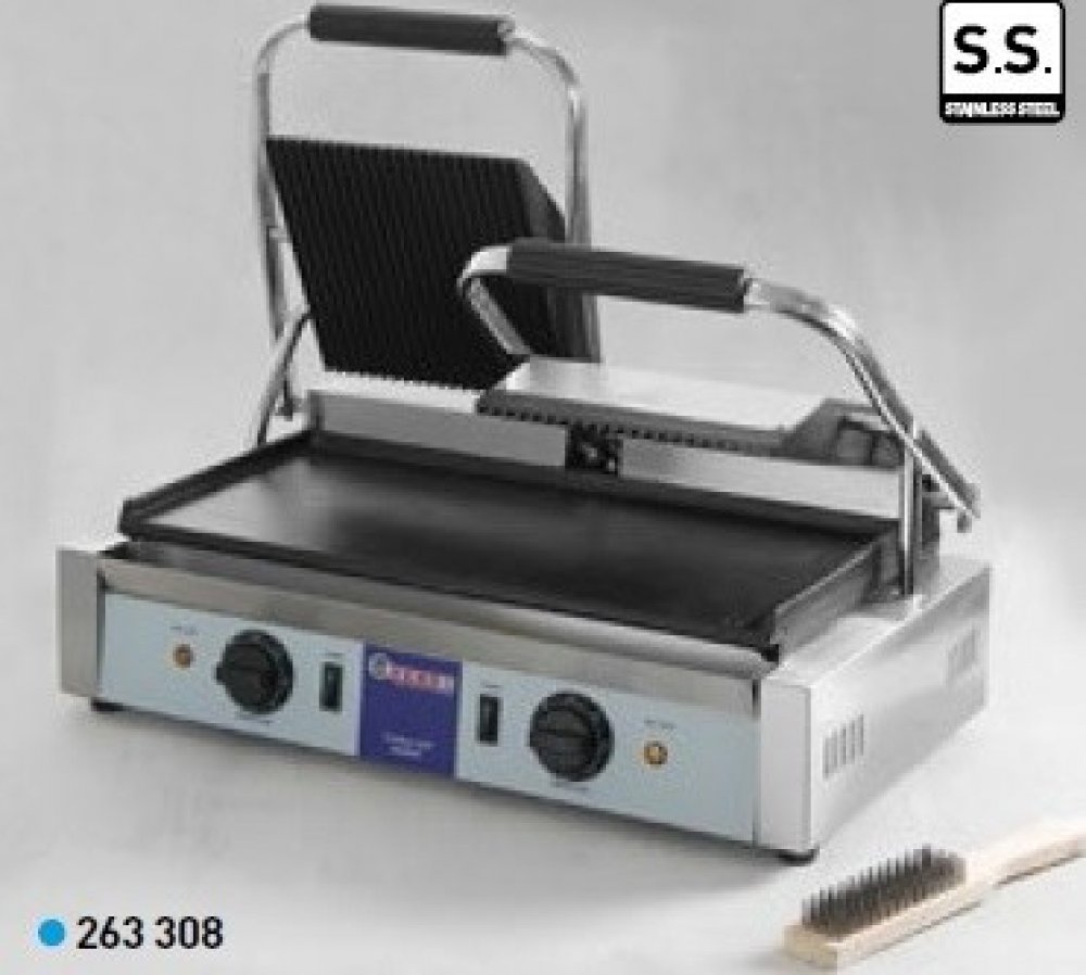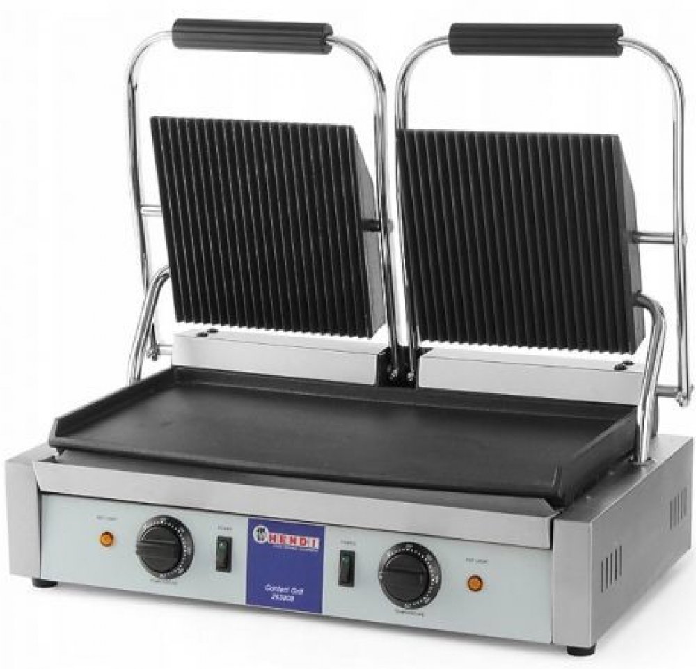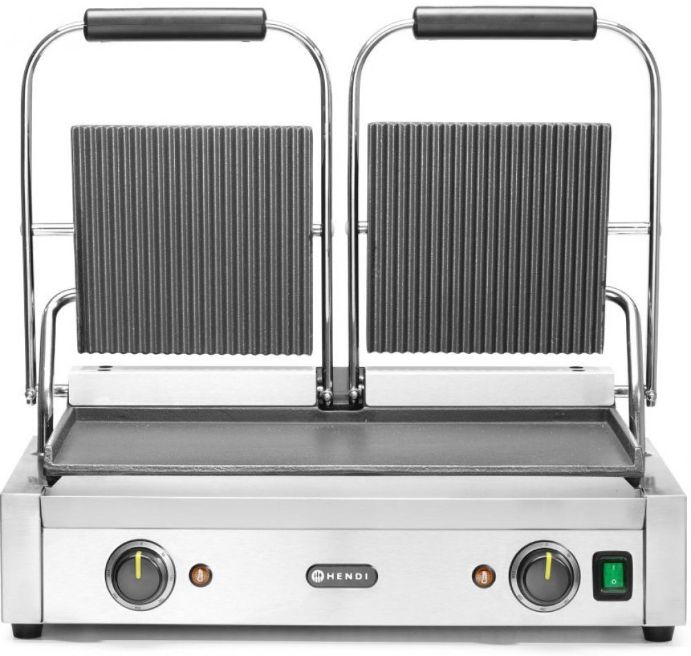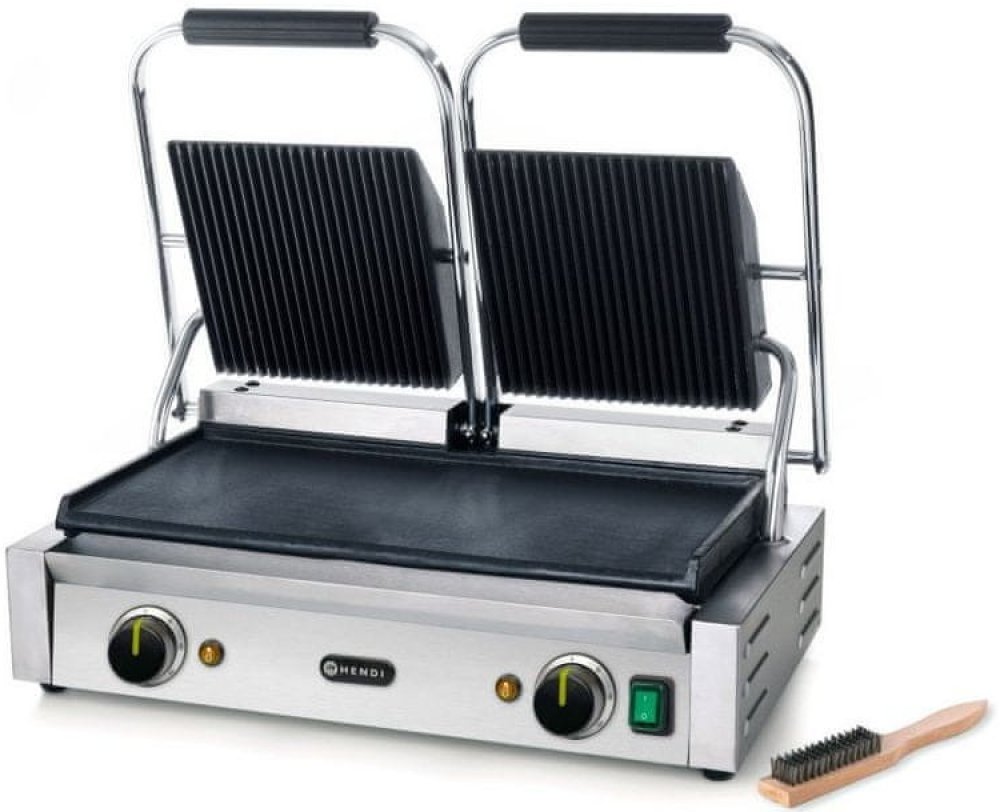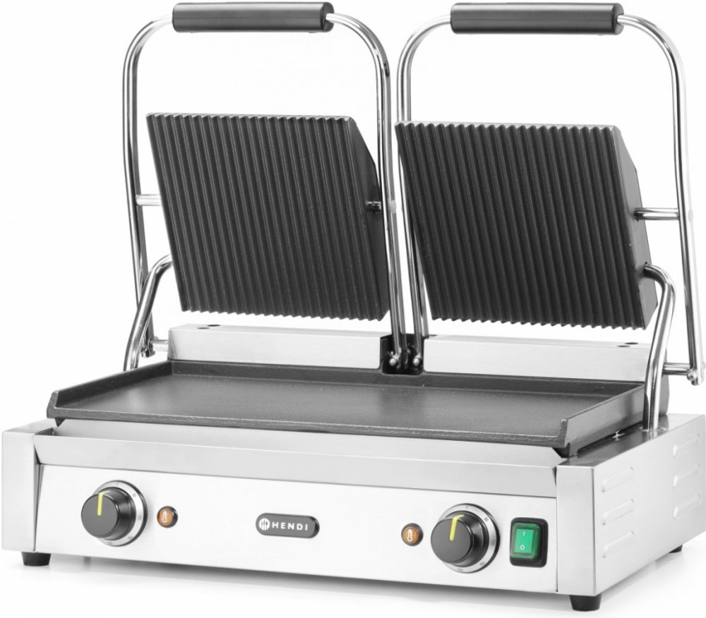 Hendi kontaktní gril - double, vroubkovaná horní, hladká spodní část, 570x395x(H)510mm
