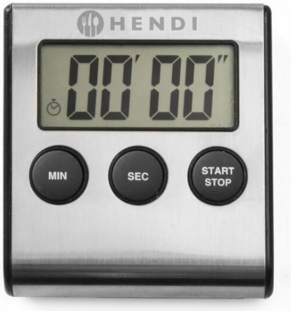 V kuchyni by určitě neměla chybět a hodí se při vaření, které si žádá přesné načasování. Kuchyňská minutka neměří jen čas, ale má i další funkce díky složitějšímu digitálnímu provedení. HENDI kuchyňská minutka digitální je vybavena dobře čitelným displejem a pohání ji AAA přídavná baterka. Minutka měří do celých 99,98 min a měří i ve vteřinách. Významné přednosti HENDI kuchyňská minutka digitální Maximálním časem měření je 99,98 min Digitální, propracovanější minutka na vaření s přehlednějším znázorněním času Užitečné stopky coby funkce, která přináší víc možností jak pohlídat čas Minutku podrží stojánek který ji drží tak, aby se dobře ovládala Minutce energii dává AAA baterie