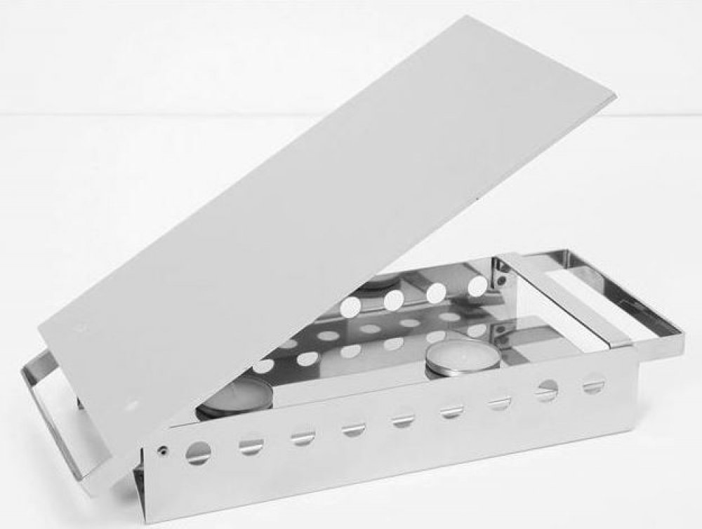 S nerezovým rámem a rukojeťmi Eloxovaná hliníková plotýnka Odolný proti poškrábání Včetně 2 držáků na svíčky