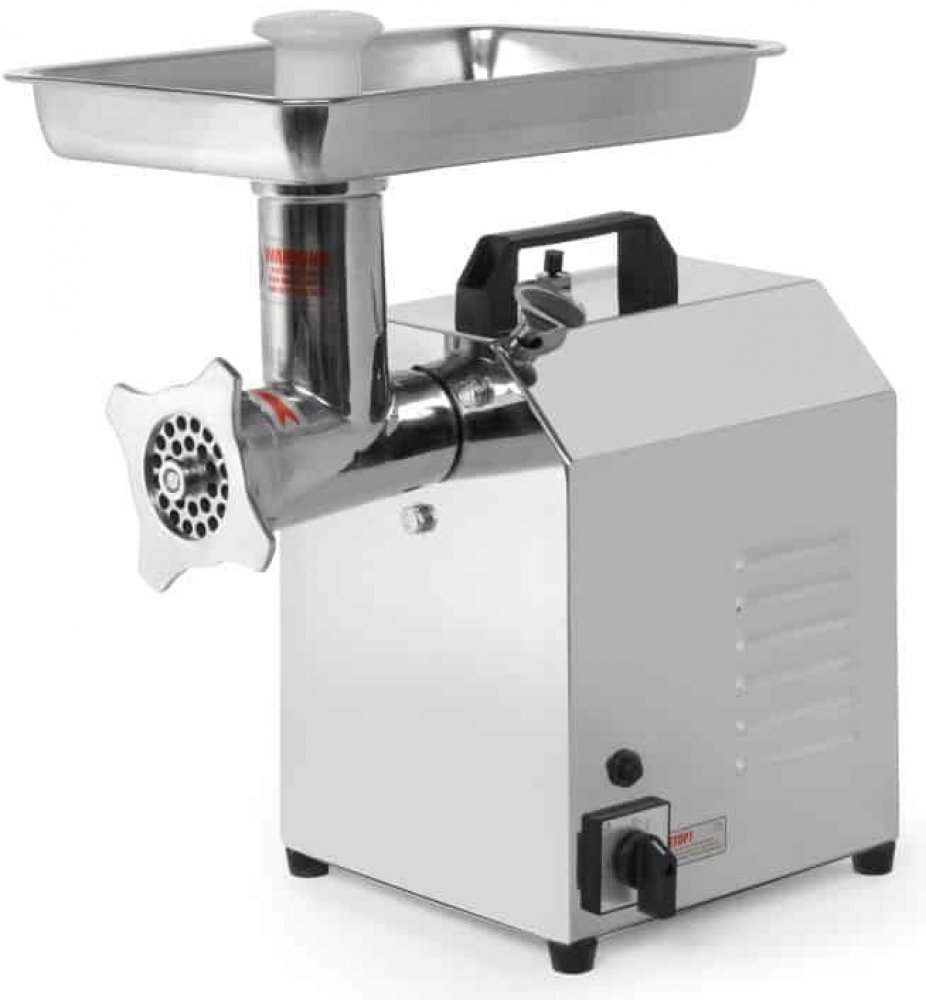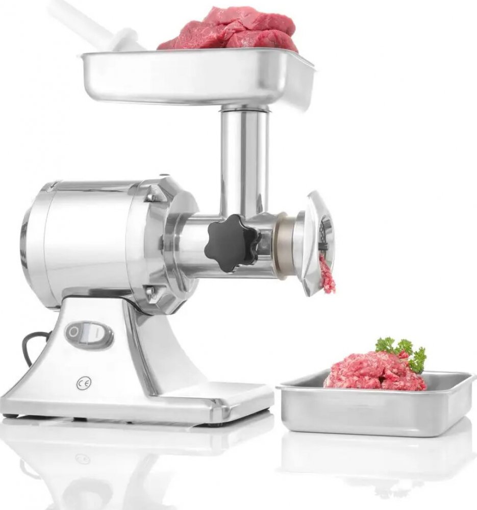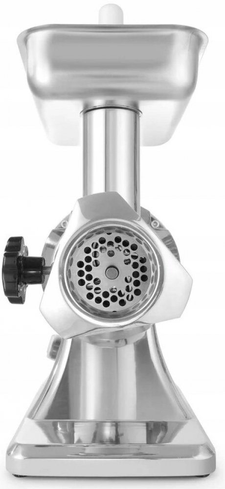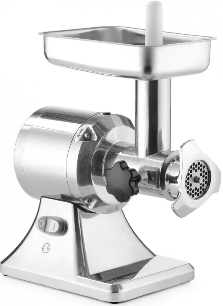 Mlýnek na maso, katalogové číslo 282274, od známé a profesionály oblíbené značky Hendi, která nabízí komplexní gastronomické vybavení. Délka 46 cm, šířka 24 cm a výška 51 cm. Určen pro profesionální využití - ideální pro řeznictví, supermarkety, velké jídelny, restaurace a jiné gastronomické provozovny. Vhodný pro jakékoliv maso, zbaveno kostí. Elegantní kryt motoru z leštěné hliníkové slitiny. Odnímatelné hrdlo je vyrobeno z nerezové oceli AISI 304. Velmi tichý provoz. Asynchronní odvětrávaný motor je zabezpečený proti přehřátí. Šnek se otáčí s rychlostí 140 ot./min. Posunovač vyroben z polyetylenu. Součástí sady je mlecí síto s otvory ø 6,5 mm a drtič. Podávací trychtýř je vyroben z nerezové oceli. Plnící trubice: ø 52 mm. Průměr výstupní trubice: ø 70 mm. Chvilková výkonnost: cca 150 kg/h. Není určen pro nepřetržitý provoz. Hrdlo se jednoduše a rychle demontuje a lze mýt v myčce nádobí.
