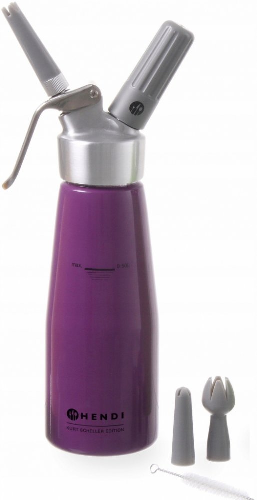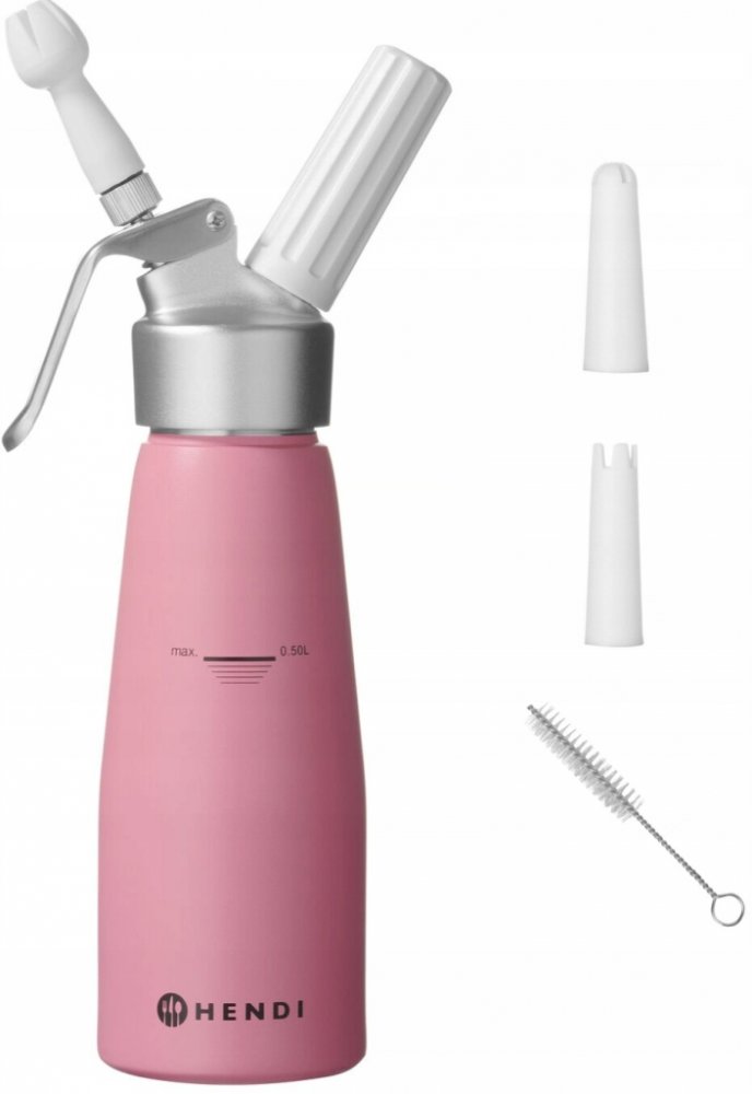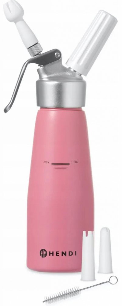 SIFON NA ŠLEHAČKU 0,5 L HENDI PASTELOVĚ RŮŽOVÝ HLINÍKOVÝ 3 KONCOVKY975886 Pastelově růžová, objem 0,5 litru, na náboje N₂O