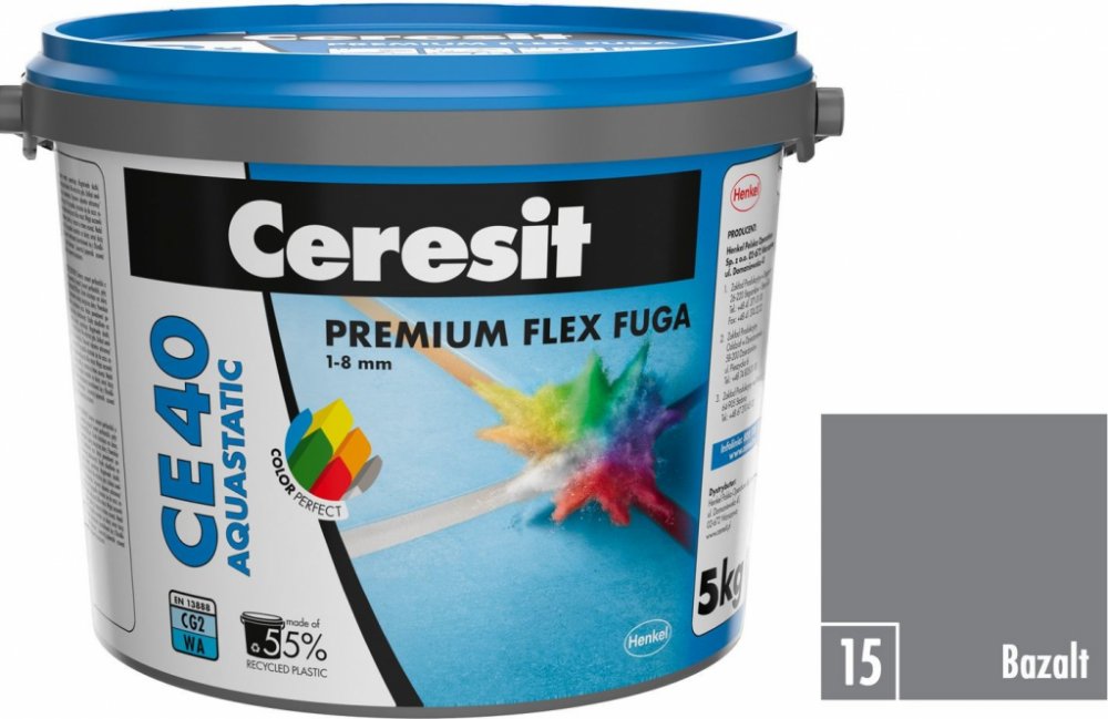 CERESIT CE 40 AQUASTATIC Flexibilní spárovací hmota vhodná pro spárování obkladů a dlažby z keramiky, včetně gresové (nesavá), skla, mozaiky, přírodního kamene a mramoru (nenáchylného k probarvení) na stěnách i podlahách. Ideální pro použití v koupelnách, sprchách, kuchyních. Určena pro použití v interiéru i exteriéru, včetně balkonů, lodžií a teras. Výhody Vysoká odolnost proti tvorbě hub a plísn...