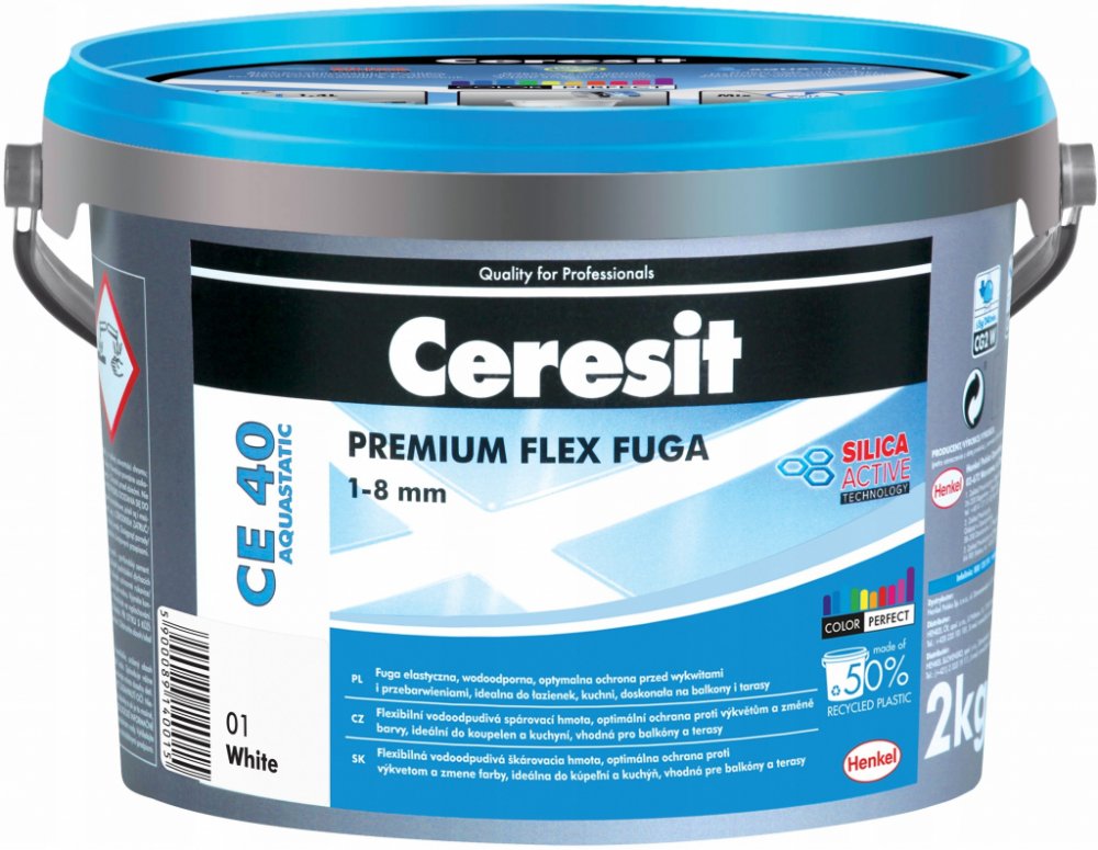 CERESIT CE 40 je flexibilní a voděodolná spárovací hmota vhodná pro spárování keramických a gresových obkladů a dlažeb, mozaiky, skla i přírodního kamene a mramoru. Vhodná k použití na stěny i podlahy.