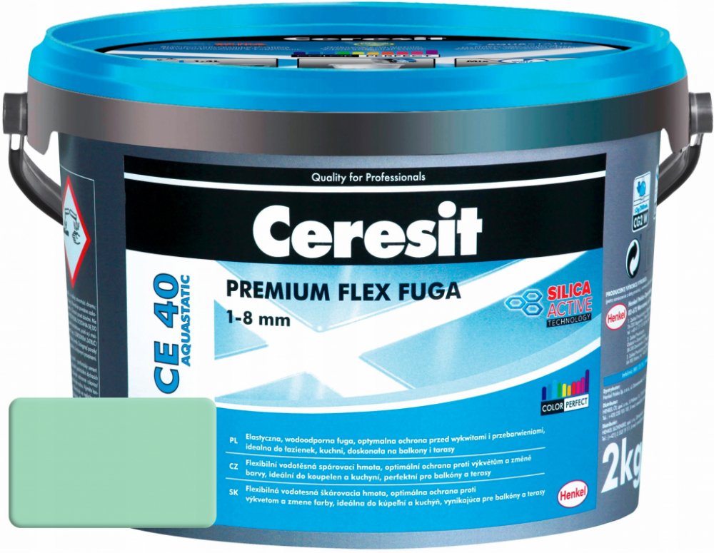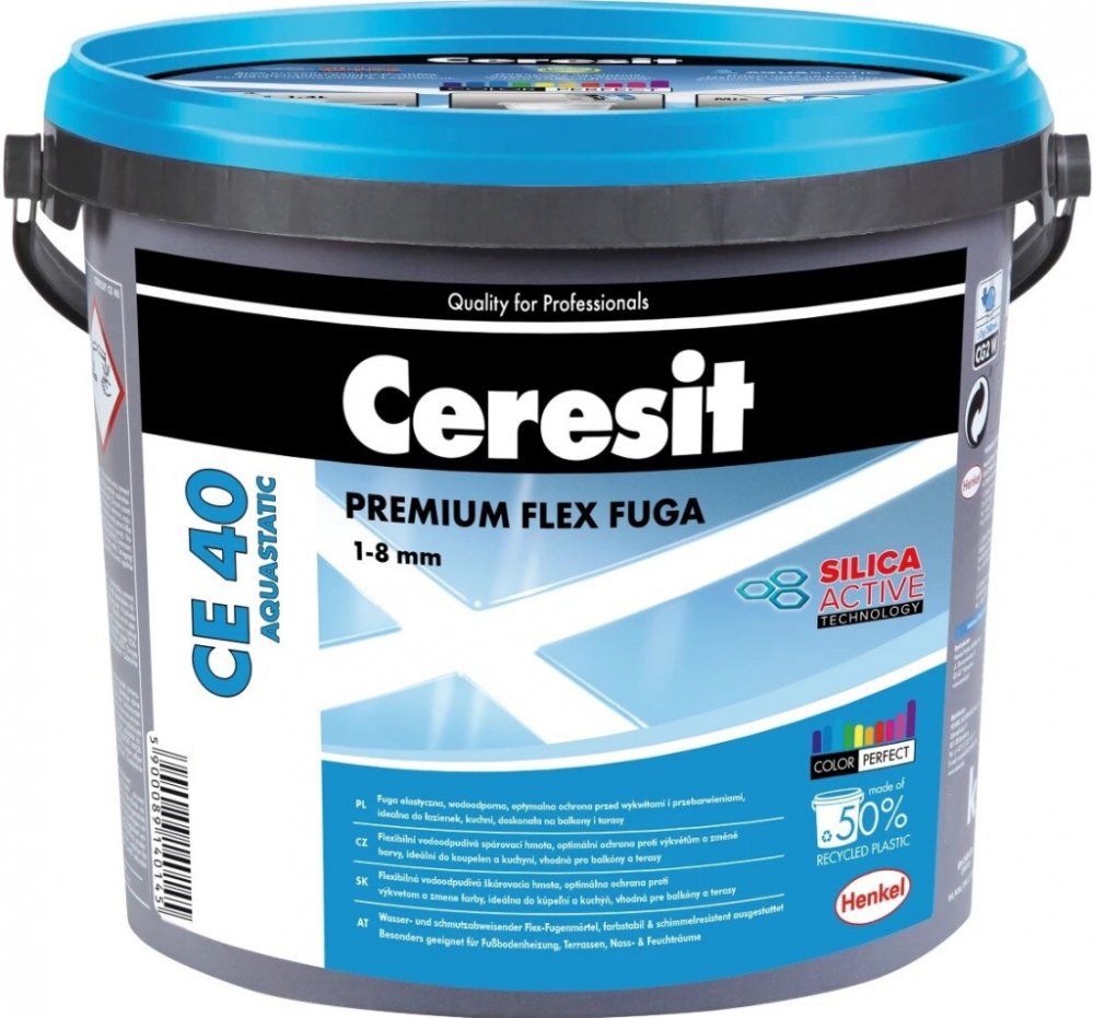 Spárovací hmota CE 40 je určena ke spárování obkladů a dlažby z keramiky, skla a kameniny, včetně mramoru, na stěnách i podlahách. Unikátní receptura TrioProtect chrání spárovací hmotu před napadením plísněmi, houbami a jinými nežádoucími mikroorganizmy. Díky zvýšené hydrofobizaci spárovací hmoty (efekt Aquastatic) se kapky vody udržují na povrchu spáry a nevsakují se do její struktury, což zvyšuje její odolnost proti vodě. To umožňuje její použití v místech dlouhodobě vystavených působení vody, jako např. koupelny, sprchy, kuchyně. Použití CE 40 doporučujeme zejména tam, kde jsou obklady či dlažba nalepeny na kritických podkladech, jako jsou např. podlahová vytápění, dřevotřísky, sádrokartóny atp. Může být použita v interiéru i exteriéru. Spárovací hmota CE 40 splňuje požadavky normy ČSN EN 13888:2009 – třídy CG2 WA (zlepšená cementová spárovací hmota s doplňkovou charakteristikou, sníženou nasákavostí vodou a vysokou otěruvzdorností). V případě širších spár do 20 mm použijte spárovací hmotu CE 43 Grand´Elit. Dilatační a rohové spáry, spáry ve styku stěn a podlah v sanitárních oblastech vyplňte silikonem Ceresit CS 25 Sanitary. Pro dodatečnou ochranu spár proti zašpinění nebo poškození lze použít silikonový impregnační nátěr Ceresit CT 10.