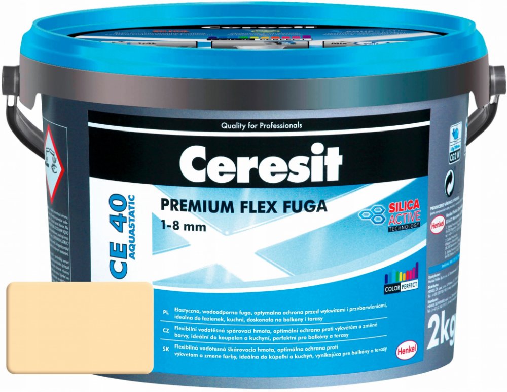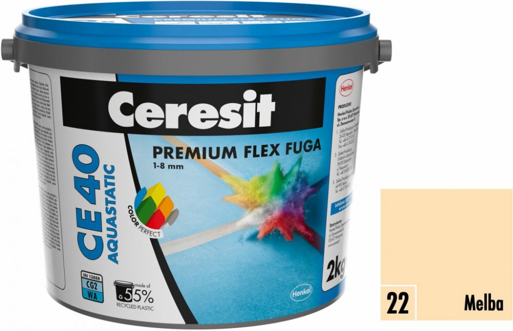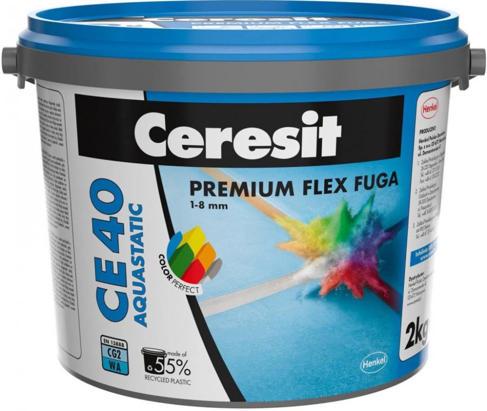 Spárovací hmota CE 40 je určena ke spárování obkladů a dlažby z keramiky, skla a kameniny, včetně mramoru, na stěnách i podlahách. Unikátní receptura TrioProtect chrání spárovací hmotu před napadením plísněmi, houbami a jinými nežádoucími mikroorganizmy. Díky zvýšené hydrofobizaci spárovací hmoty (efekt Aquastatic) se kapky vody udržují na povrchu spáry a nevsakují se do její struktury, což zvyšuje její odolnost proti vodě. To umožňuje její použití v místech dlouhodobě vystavených působení vody, jako např. koupelny, sprchy, kuchyně. Použití CE 40 doporučujeme zejména tam, kde jsou obklady či dlažba nalepeny na kritických podkladech, jako jsou např. podlahová vytápění, dřevotřísky, sádrokartóny atp. Může být použita v interiéru i exteriéru. Spárovací hmota CE 40 splňuje požadavky normy ČSN EN 13888:2009 – třídy CG2 WA (zlepšená cementová spárovací hmota s doplňkovou charakteristikou, sníženou nasákavostí vodou a vysokou otěruvzdorností). V případě širších spár do 20 mm použijte spárovací hmotu CE 43 Grand´Elit. Dilatační a rohové spáry, spáry ve styku stěn a podlah v sanitárních oblastech vyplňte silikonem Ceresit CS 25 Sanitary. Pro dodatečnou ochranu spár proti zašpinění nebo poškození lze použít silikonový impregnační nátěr Ceresit CT 10.