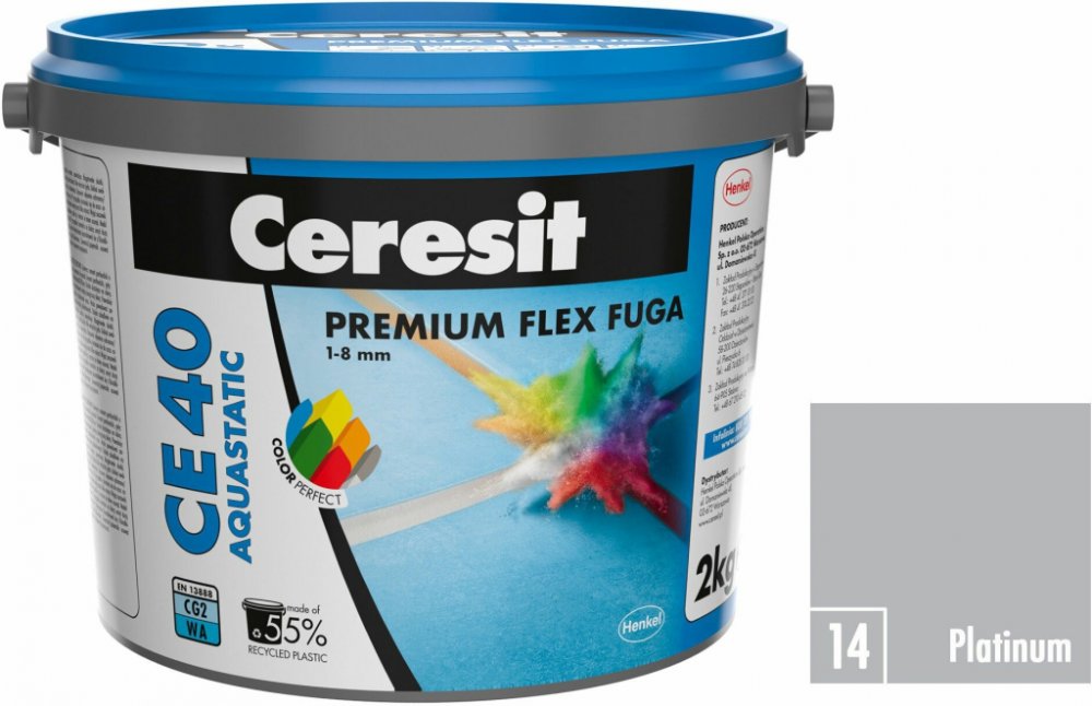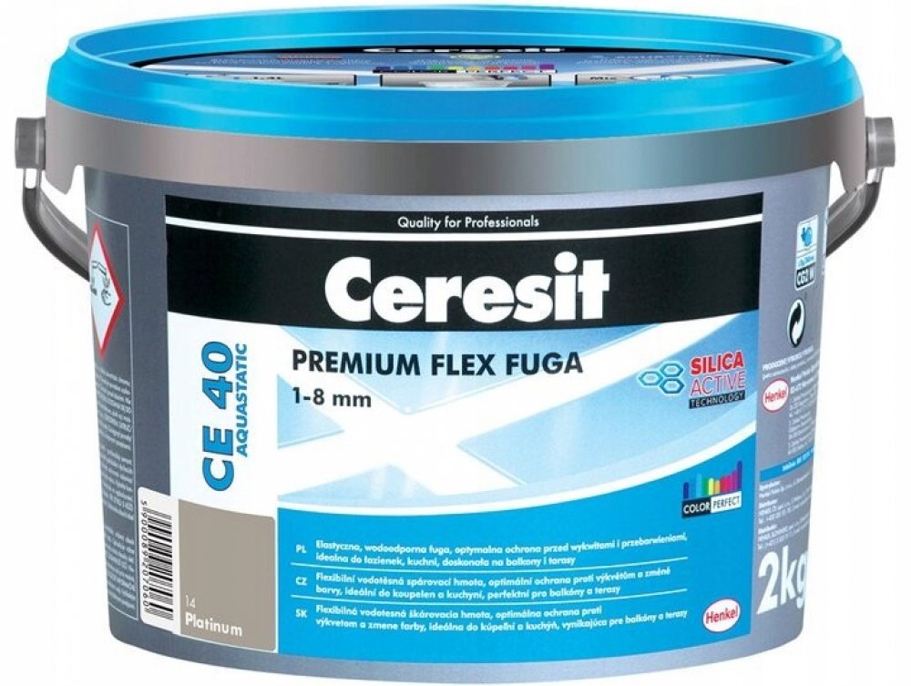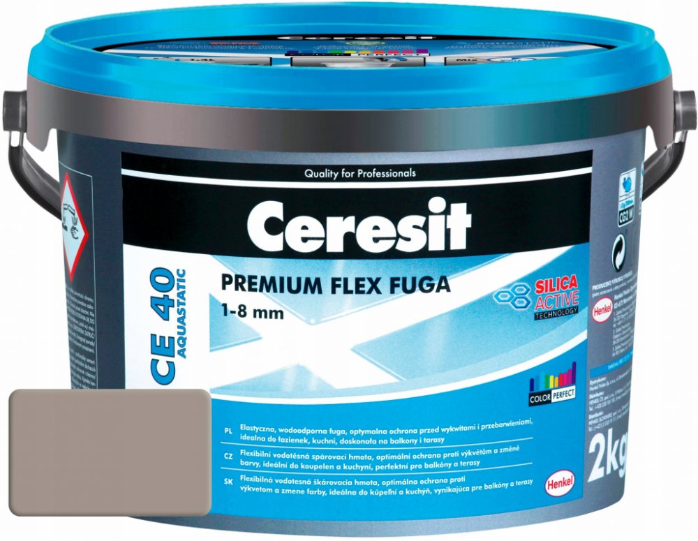 Spárovací hmota CE 40 s technologií Color Perfect. Vlastnosti: dokonalou stálost a intenzitu barev odolnost proti výkvětům a změně barvy snadné čištění a péči vysoká odolnost proti vzniku trhlin a poškrábání optimální čas vytvrzení a umývání v případě gresových dlažeb snadné míchání a aplikace spárovací hmoty je chráněná proti plísním a houbám Oblasti použití: Flexibilní spárovací hmota Ceresit CE...