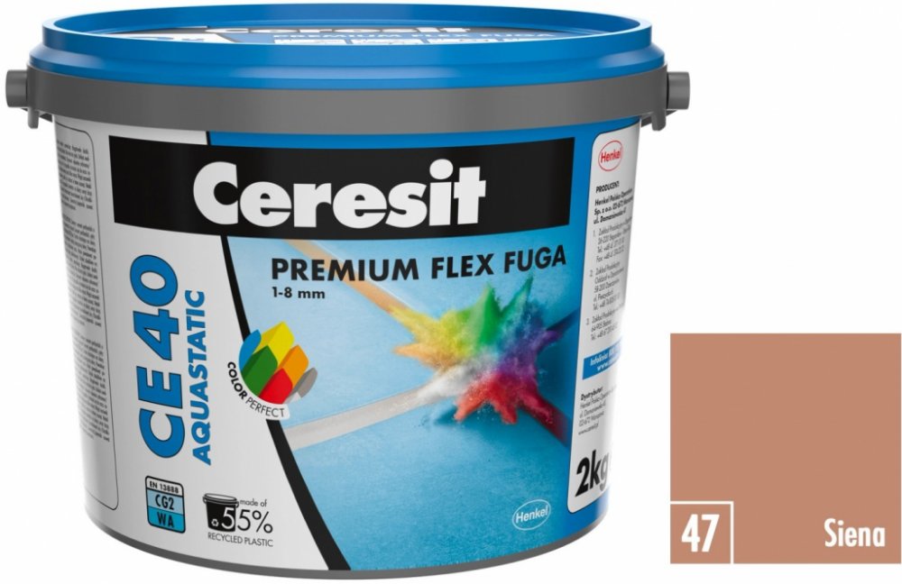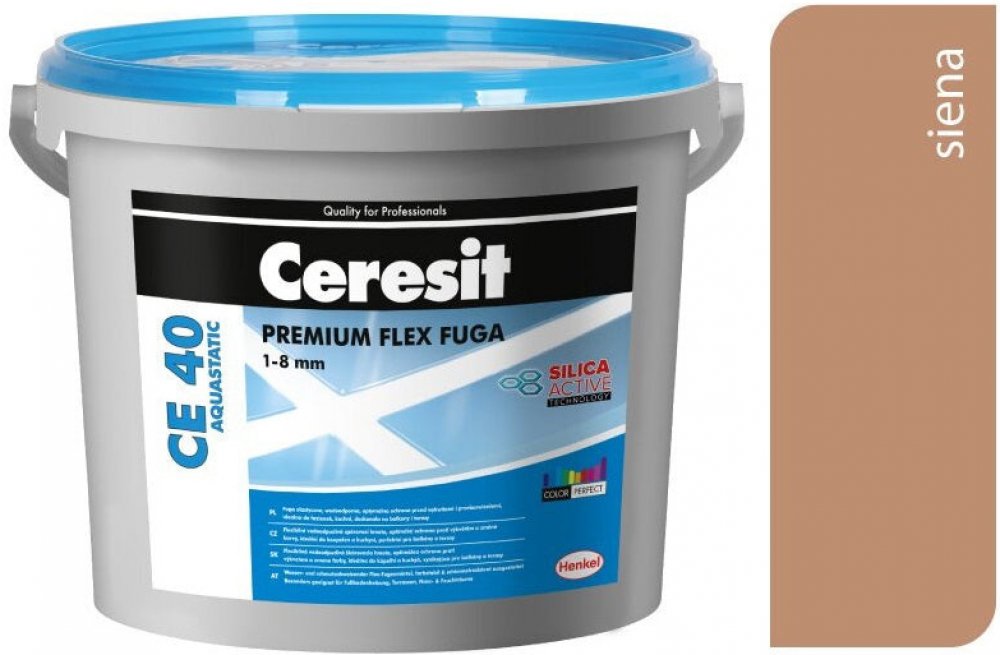 Spárovací hmota CE 40 s technologií Color Perfect. Vlastnosti: dokonalou stálost a intenzitu barev odolnost proti výkvětům a změně barvy snadné čištění a péči vysoká odolnost proti vzniku trhlin a poškrábání optimální čas vytvrzení a umývání v případě gresových dlažeb snadné míchání a aplikace spárovací hmoty je chráněná proti plísním a houbám Oblasti použití: Flexibilní spárovací hmota Ceresit CE...
