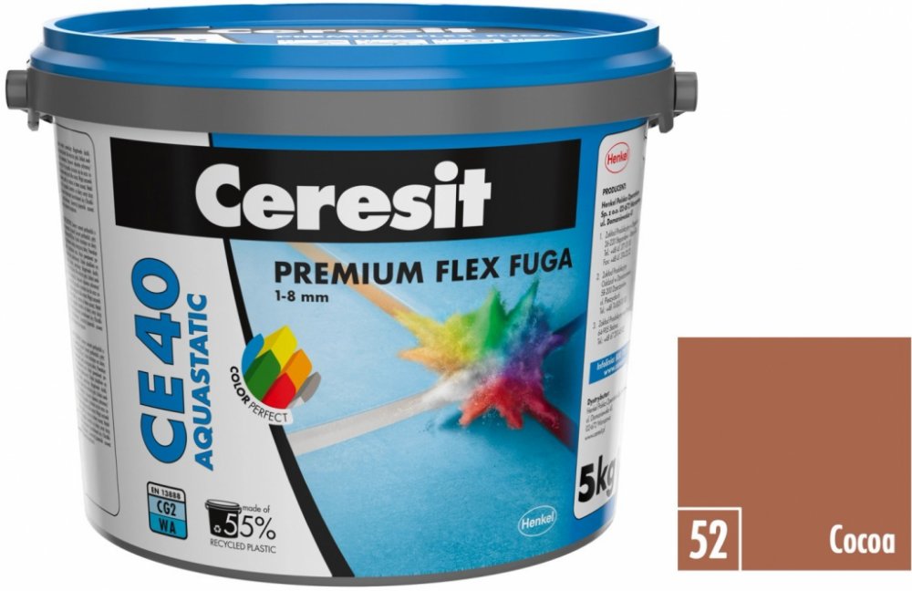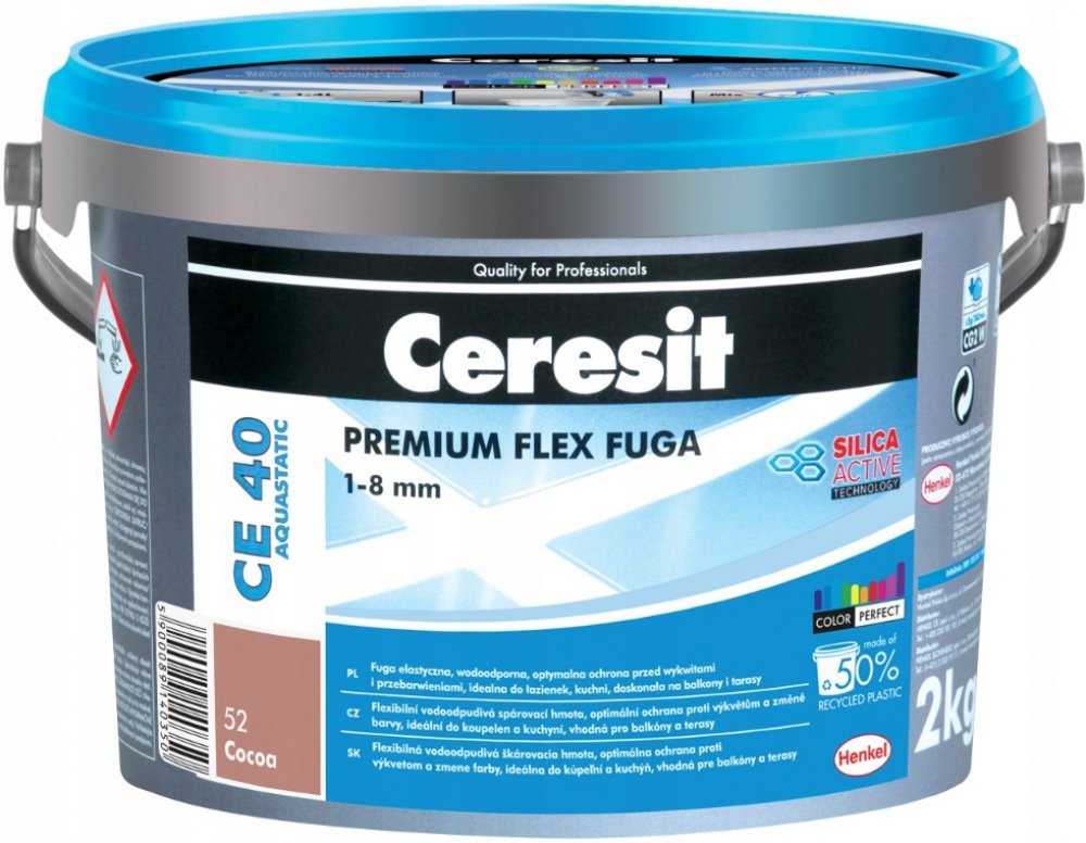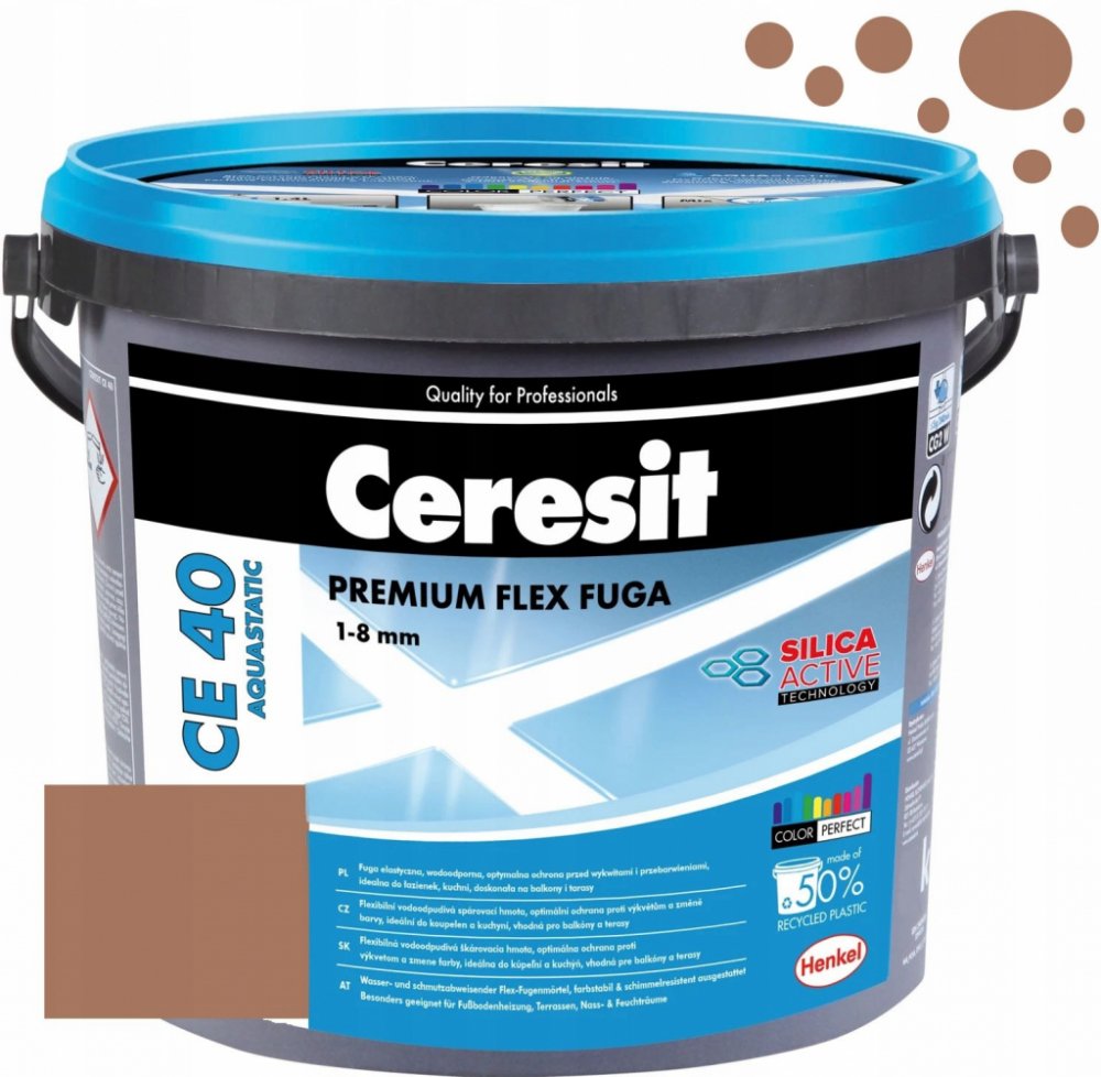 Ceresit CE 40 Aquastatic - flexibilní, voděodolná spárovací hmota na spárování keramických obkladů a dlažeb, včetně gresové, na spáry se šířkou do 8 mm