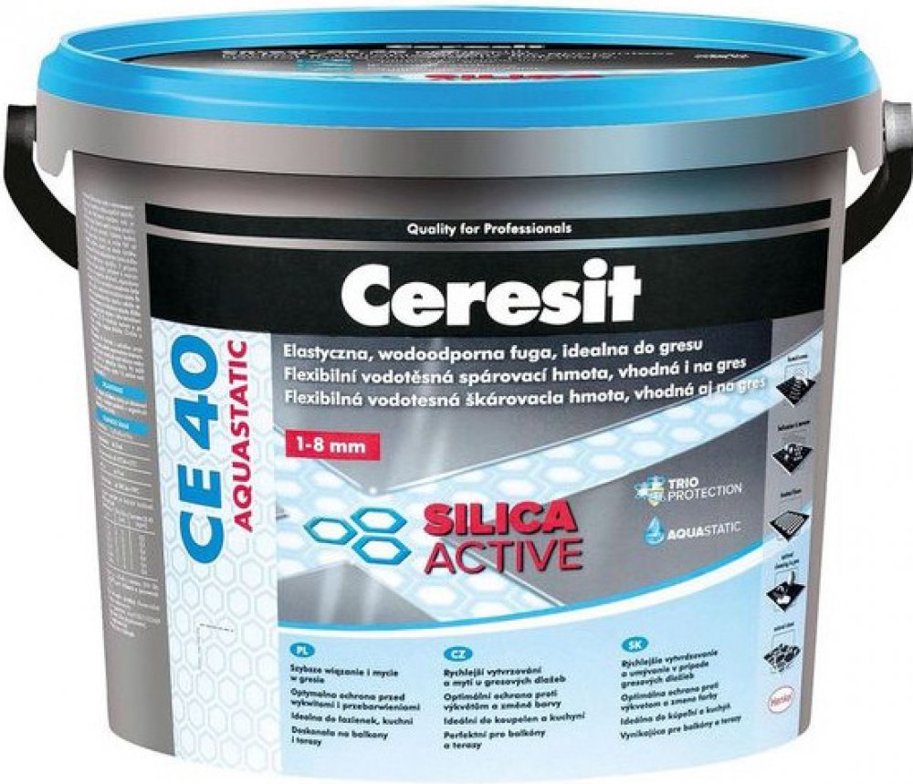 Flexibilní spárovací hmota Ceresit CE 40 je obzvlášť vhodná na spárování obkladů a dlažby z keramiky, včetně gresové (nenasákavá), skla, mozaiky, přírodního kamene a mramoru (nenáchylnéh na probarvení)) na stěnách i podlahách. Ceresit CE 40 s inovativní polymerovou technologií Silica Active zaručuje: optimální čas vytvrzení a umývání v případě gresových i keramických dlažeb, vysokou odolnost proti vzniku trhlin a poškrábání a zároveň technologie Color Perfect zabezpečuje trvalou barevnost, dlouholetou vysokou kvalitu a dokonalý vzhled spárovací hmoty. Díky vodoodpudivému efektu Aquastatic zůstávají kapky na povrchu spáry a nevsakují se do její struktury, což zvyšuje odolnost proti plísním a poškození. Tyto vlastnosti dělají spárovací hmotu CE 40 ideálním přípravkem k použití na místech dlouhodobě vystaveným působení vody, jako jsou koupelny, sprchy a kuchyně. Je určená na použití v interiéru i exteriéru, včetně balkonů, lodžií a teras. Zvlášť se doporučuje na kritické podklady, jako je sádrokarton, dřevotříška a plochy s podlahovým vytápěním.