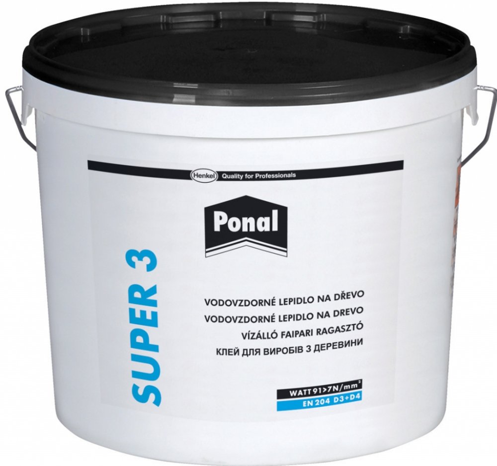 - Ponal Super 3: láhev 550 g, kýbl 5 kg, 10 kg a 30 kg