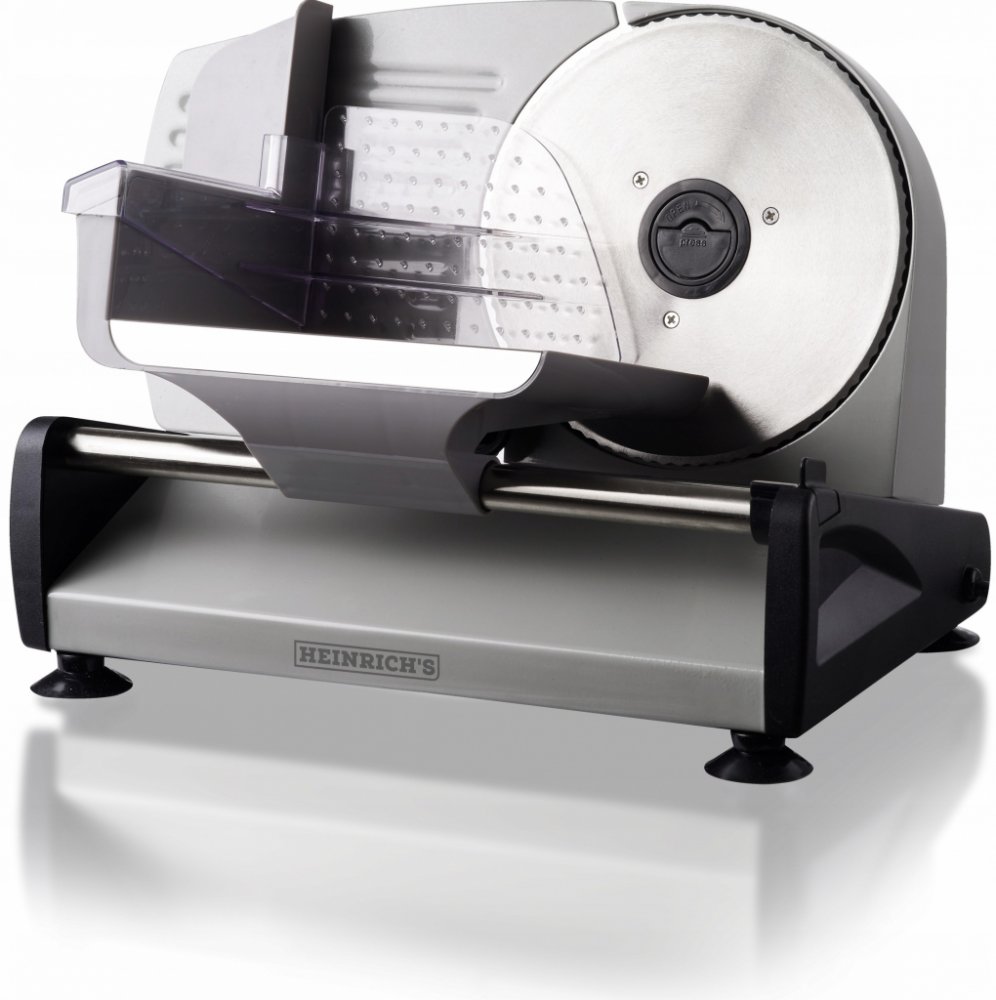 Kvalitní elektrický kráječ HEINRICH'S HMA 8704 na chléb, uzeniny, sýry, zeleninu usnadní každodenní krájení potravin na rovné a rovné plátky s vhodně zvolenou šířkou.