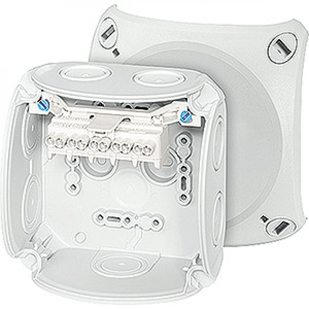 Kabelová krabicová rozvodka z vysoce kvalitního termoplastu. Pro nástěnné aplikace v budovách nebo chráněnou instalaci ve venkovním prostředí. Se stěnovými úchyty a upevněním víka pomocí rychlouzávěrů. S inovativní technologií provedení svorek do 2,5 mm², 5pólové. Kabelový vstup přes pružné těsnící membrány ve dně a stěnách skříně. Následné použití kabelových vývodek odstraněním těsnící membrány j...